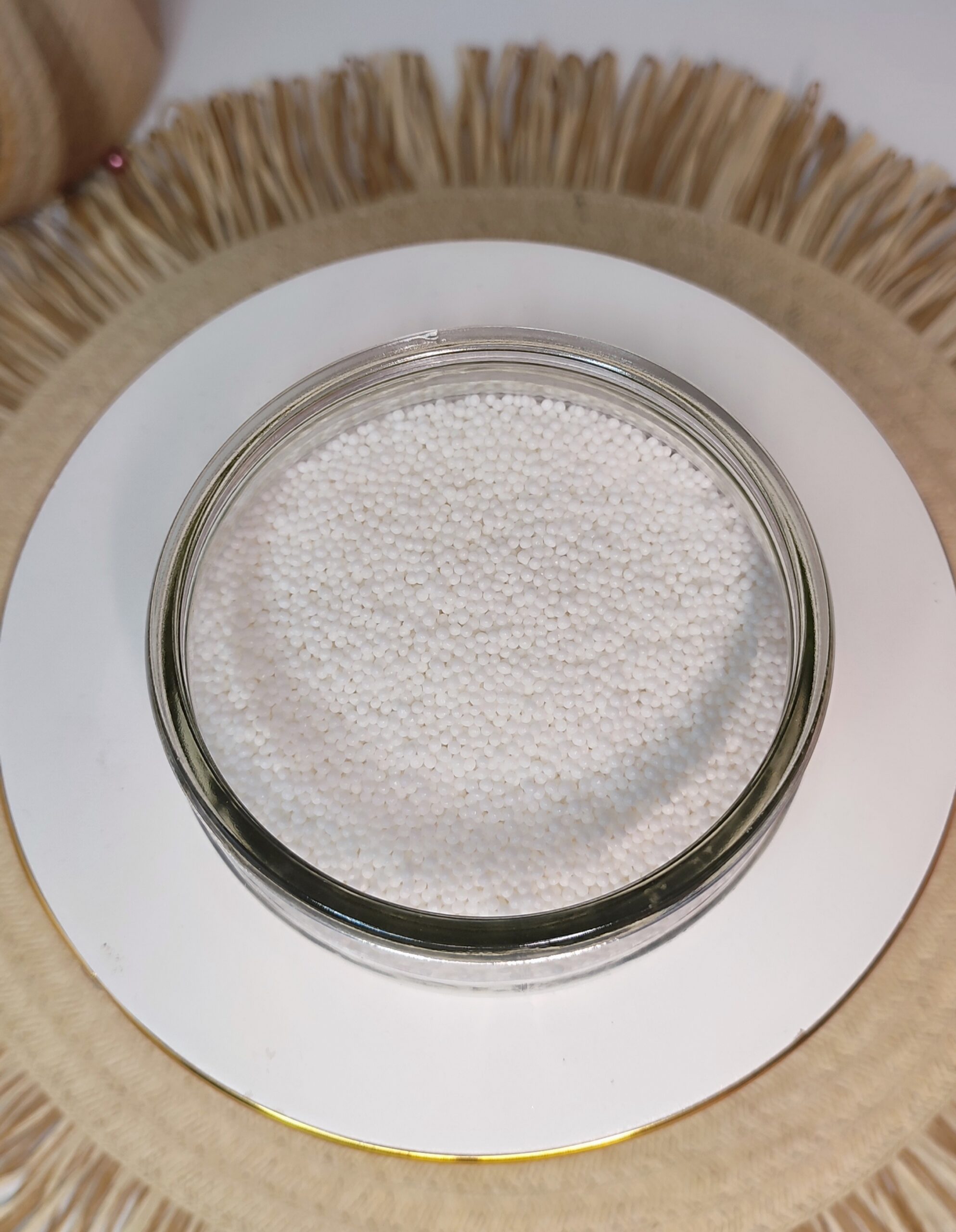 Posypka zapakowana w torebce z wygodnym zamykaniem strunowym (niewykorzystane perełki, można szczelnie zamknąć do ponownego użycia).