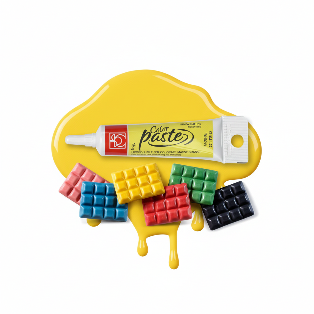 Odkryj intensywny, soczysty Żółty kolor z barwnikiem do czekolady w żelu Modecor! Ten profesjonalny żelowy barwnik (15 g) idealnie nadaje się do barwienia białej i mlecznej czekolady, ganache czy kremów na bazie tłuszczu kakaowego. Dzięki wodoodpornej formule nie wpływa na strukturę ani smak wypieków – kolor pozostaje żywy nawet po wypieku lub schłodzeniu.