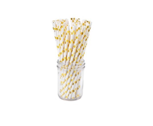 Słomki białe w złote kropki