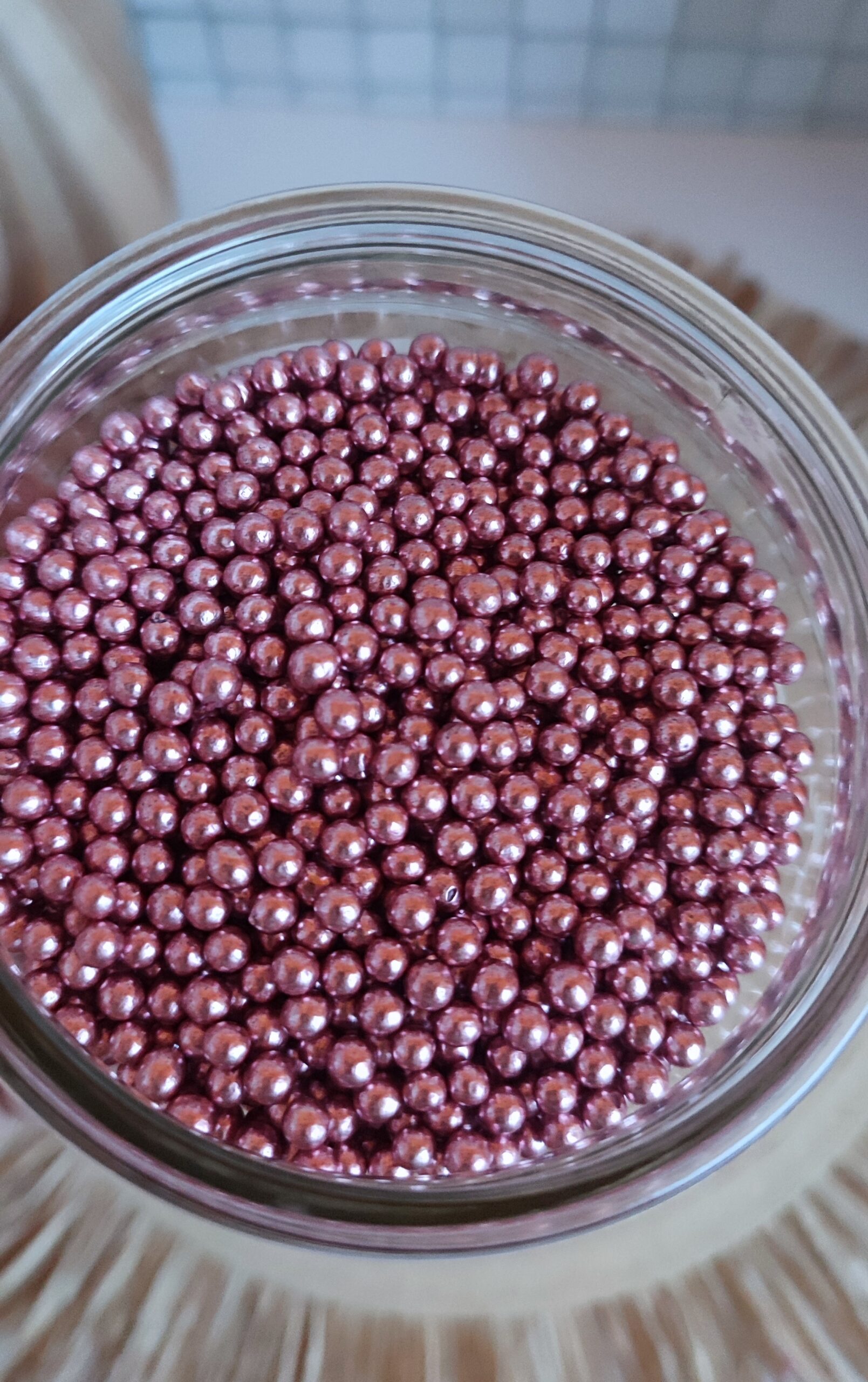 Dodaj blasku swoim ciastkom, tortom i deserom z błyszczącymi perełkami cukrowymi w uroczym różowym odcieniu! Te drobne kuleczki o średnicy 4 mm (opakowanie 50 g) mienią się efektownym połyskiem, idealnie imitując klejnoty. W 100% jadalne, bezglutenowe i łatwe w użyciu – posyp, przyklej lukrem i zachwyć gości. Perfekcyjne do dekoracji babeczek, muffinów czy świątecznych przysmaków. Smak neutralny, czysta słodycz i magia!
