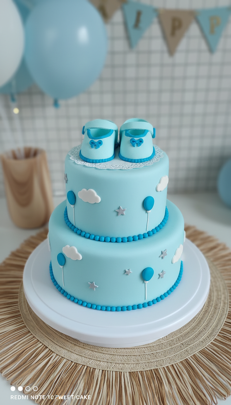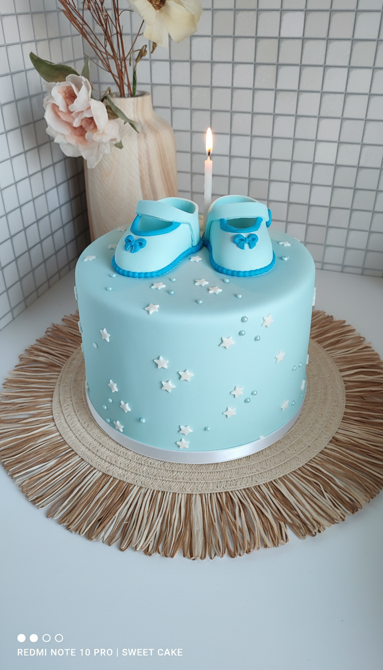 Buciki cukrowe tort CHRZEST baby shower niebieskie 9906