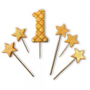 Nasza zestaw z cyfrą 1 i dodatkowymi gwiazdkami odnajdzie się świetnie na każdym torcie urodzinowym. Jesteśmy pewni, że przypadnie on do gustu każdemu, niezależnie od wieku! Komplet zawiera aż sześć figurek, które połączone w całość tworzą niepowtarzalną i magiczną kompozycje. Wyróżniamy w nim aż pięć gwiazdek i jedną cyfrę. Bajkowości dodaje złoty kolor, który rzuca się w oczy i idealnie pasuje do motywu gwiazd. Żłobienia na liczbie wyróżniają ją na tle innych dekoracji i sprawiają, że jest ona wyjątkowa!