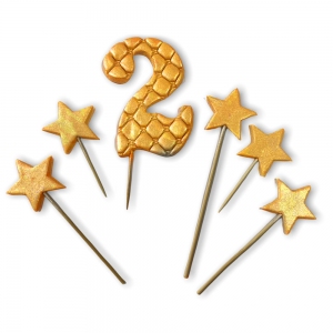 Nasza zestaw z cyfrą 1 i dodatkowymi gwiazdkami odnajdzie się świetnie na każdym torcie urodzinowym. Jesteśmy pewni, że przypadnie on do gustu każdemu, niezależnie od wieku! Komplet zawiera aż sześć figurek, które połączone w całość tworzą niepowtarzalną i magiczną kompozycje. Wyróżniamy w nim aż pięć gwiazdek i jedną cyfrę. Bajkowości dodaje złoty kolor, który rzuca się w oczy i idealnie pasuje do motywu gwiazd. Żłobienia na liczbie wyróżniają ją na tle innych dekoracji i sprawiają, że jest ona wyjątkowa!