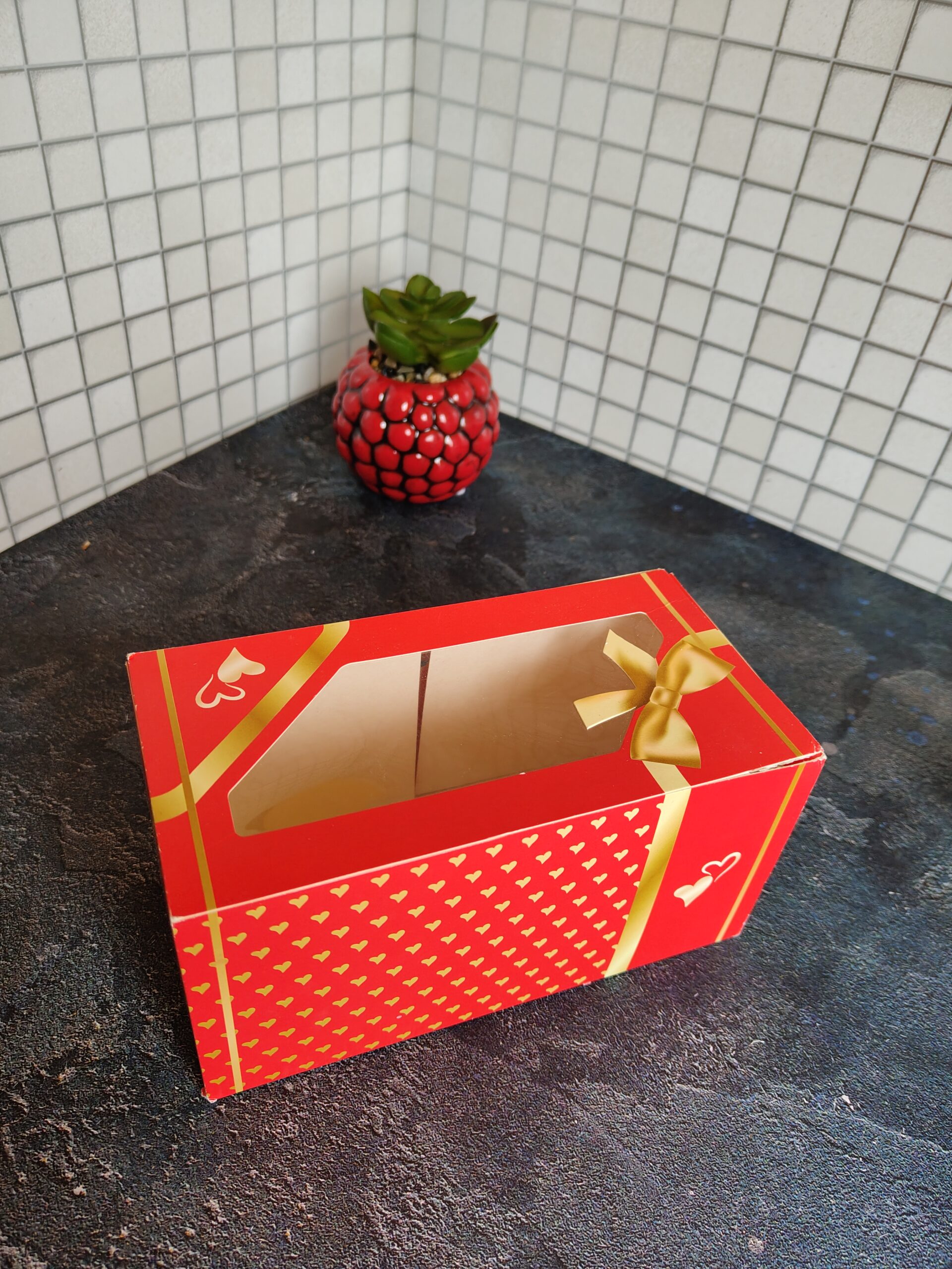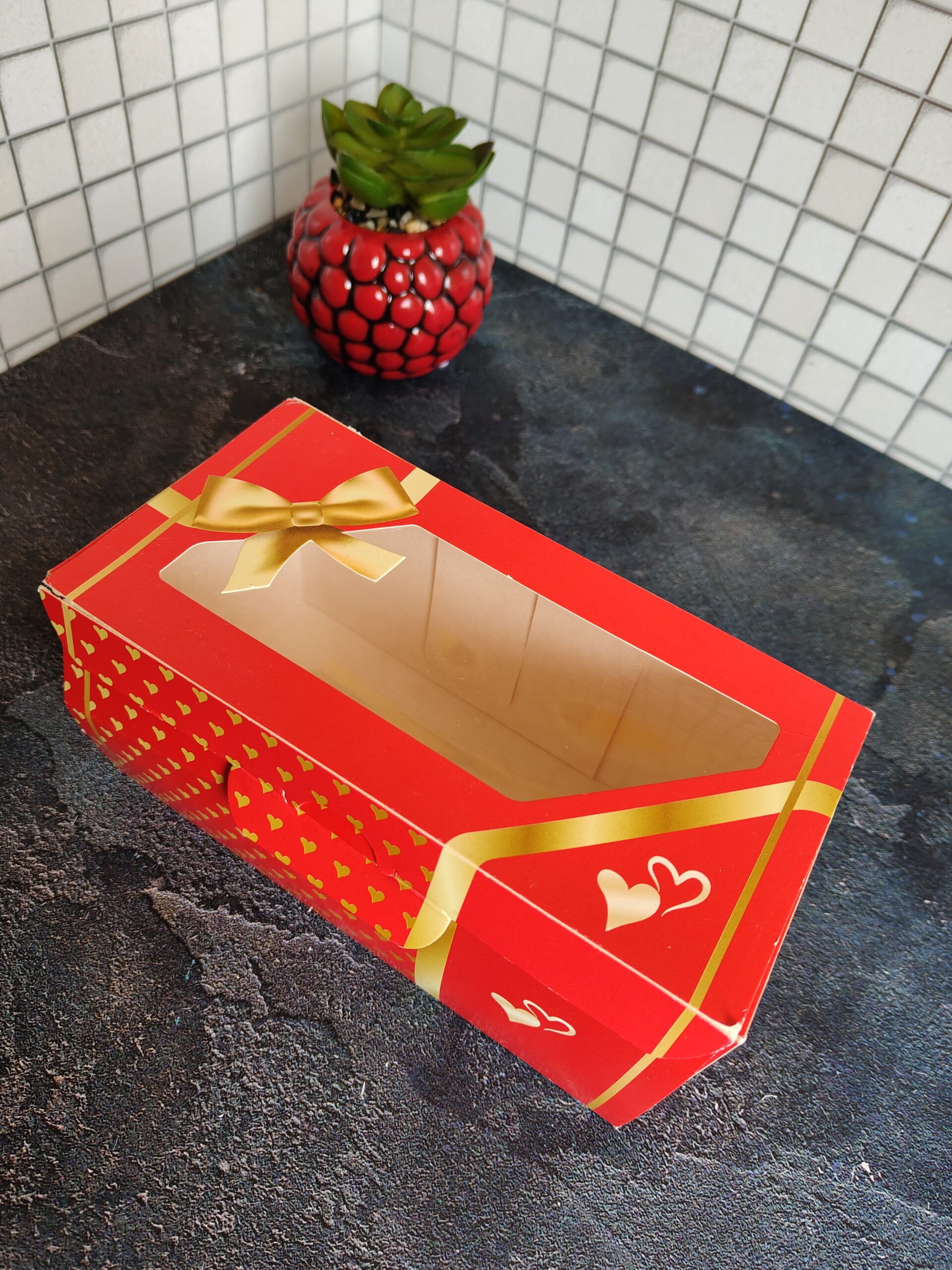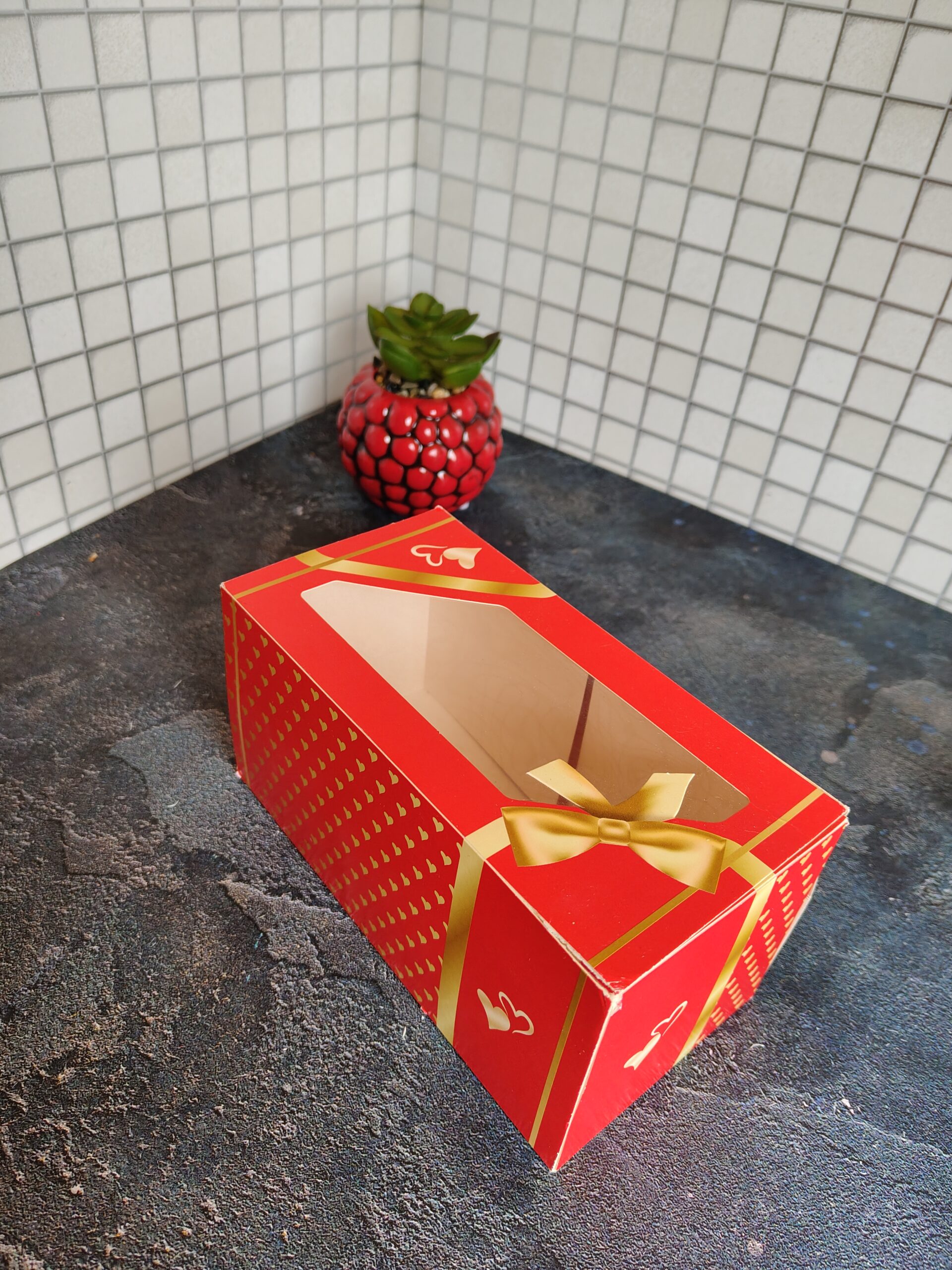Czerwone Pudełko z okienkiem w serduszka 18x9x9 cm 1 szt