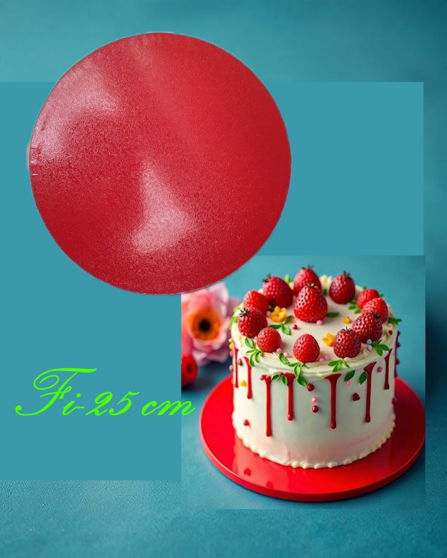 Sztywny Podkład pod tort w stylu”Angielskim” Czerwony 25cm H1,2 DECORA