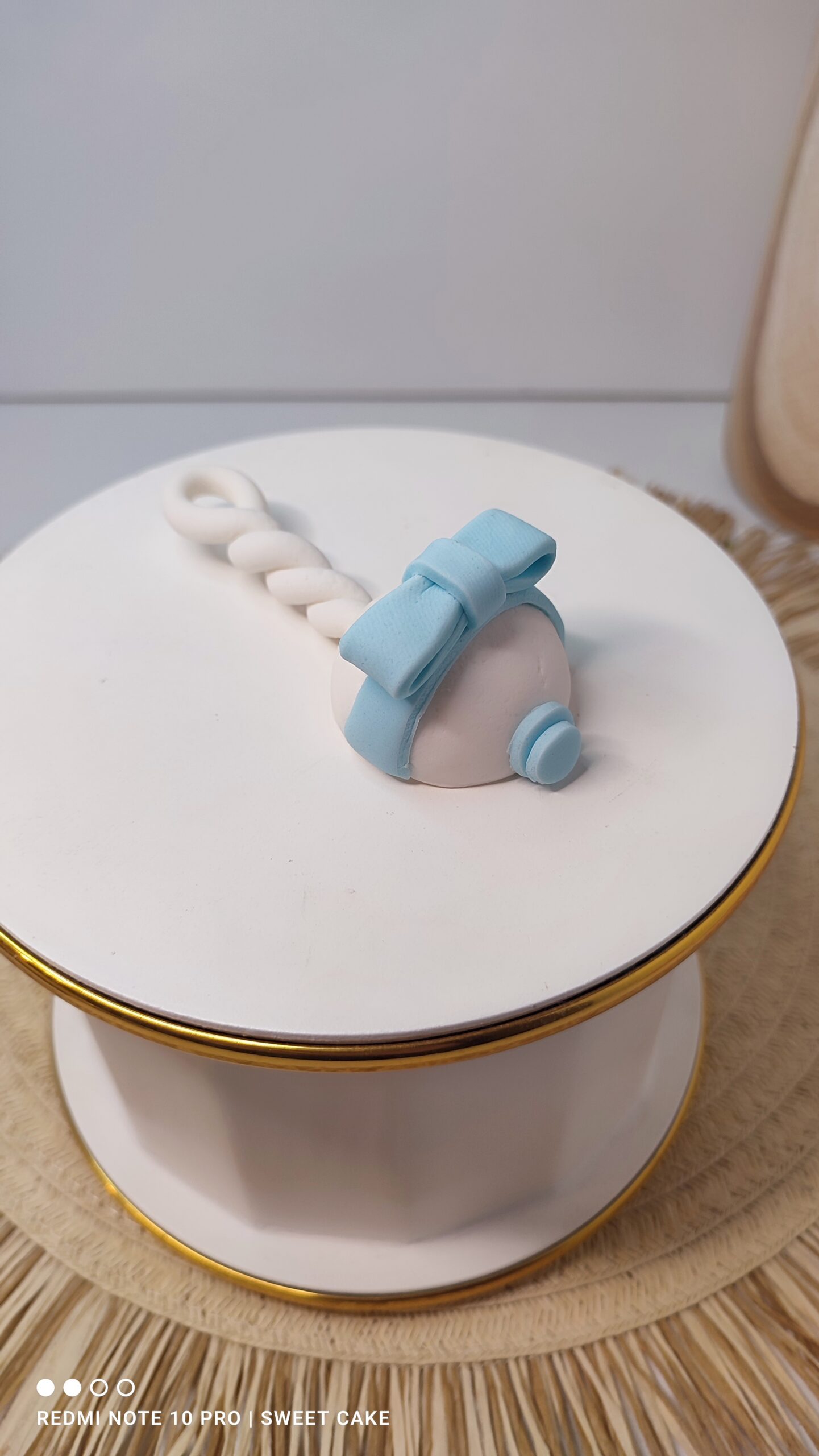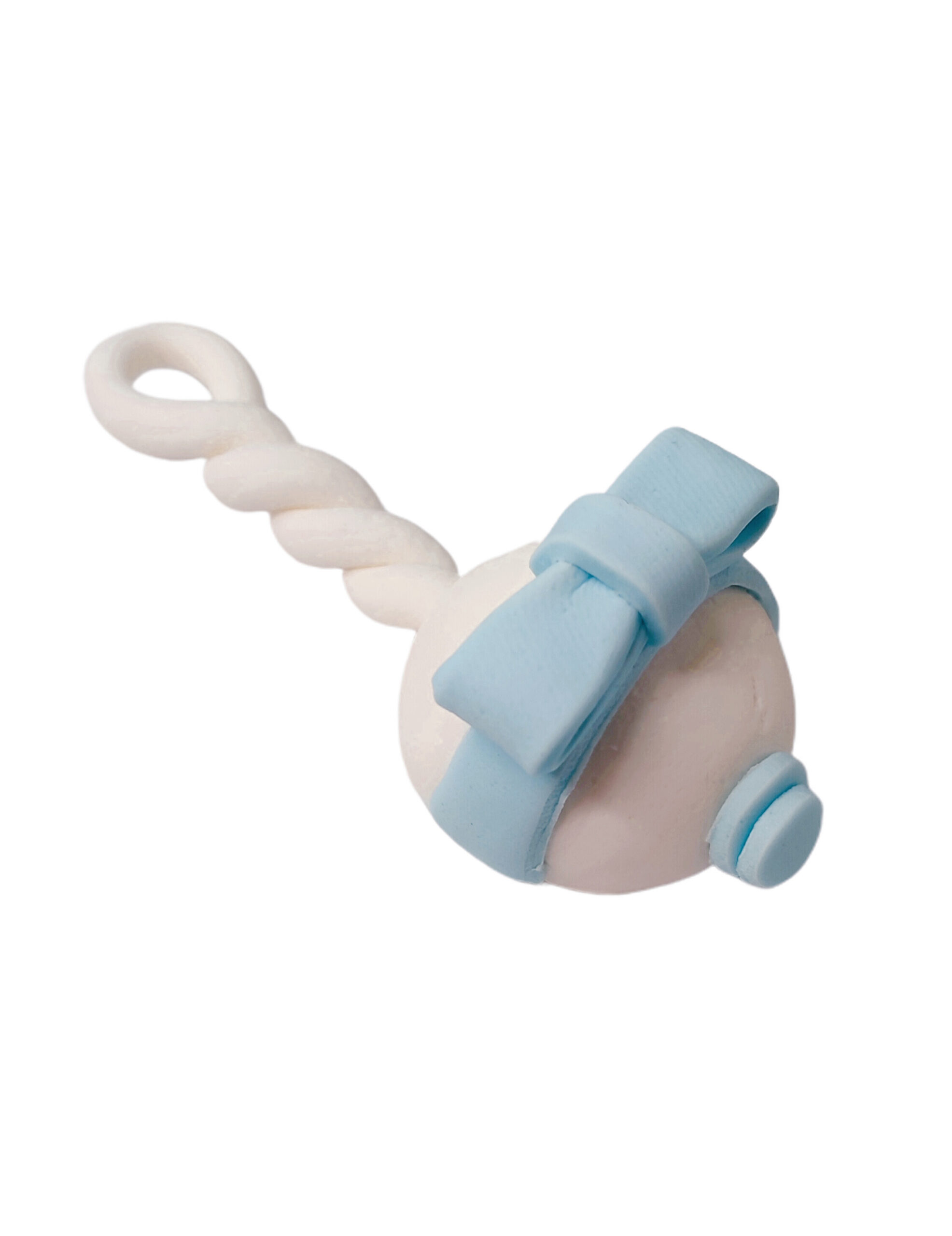 Dekoracja cukrowa „Grzechotka niebieska z kokardą” 1 szt