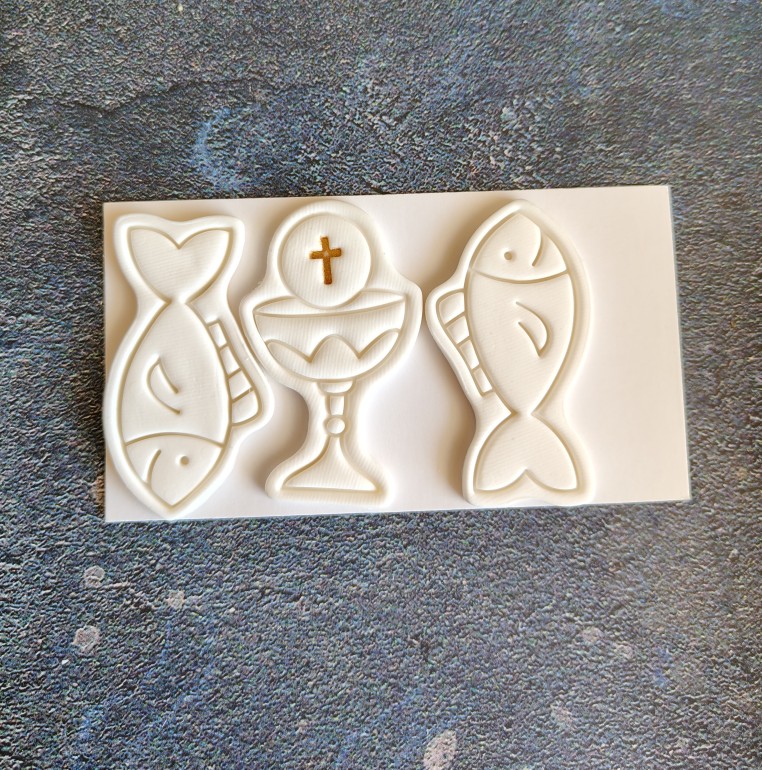 Dekoracja CUKROWA Kielich i dwie ryby na komunie