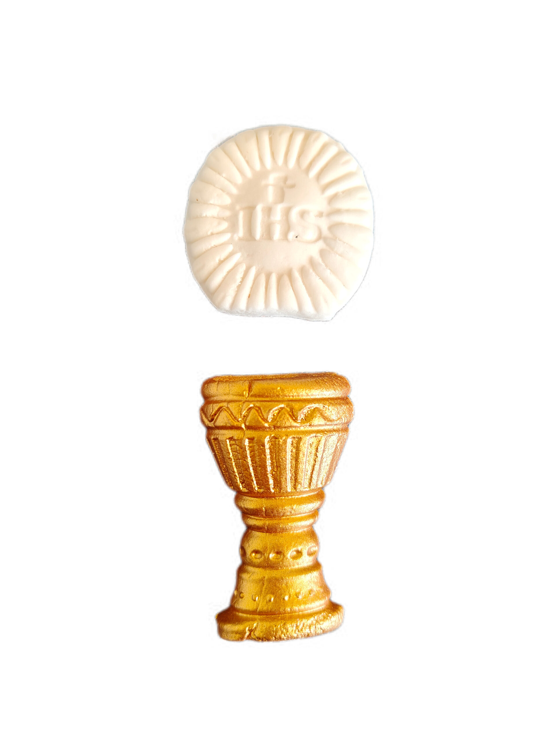 Dekoracja cukrowa Komunijna Kielich złoty z Hostią zestaw 2 szt ( 1 szt hostia i 1 szt kielich)