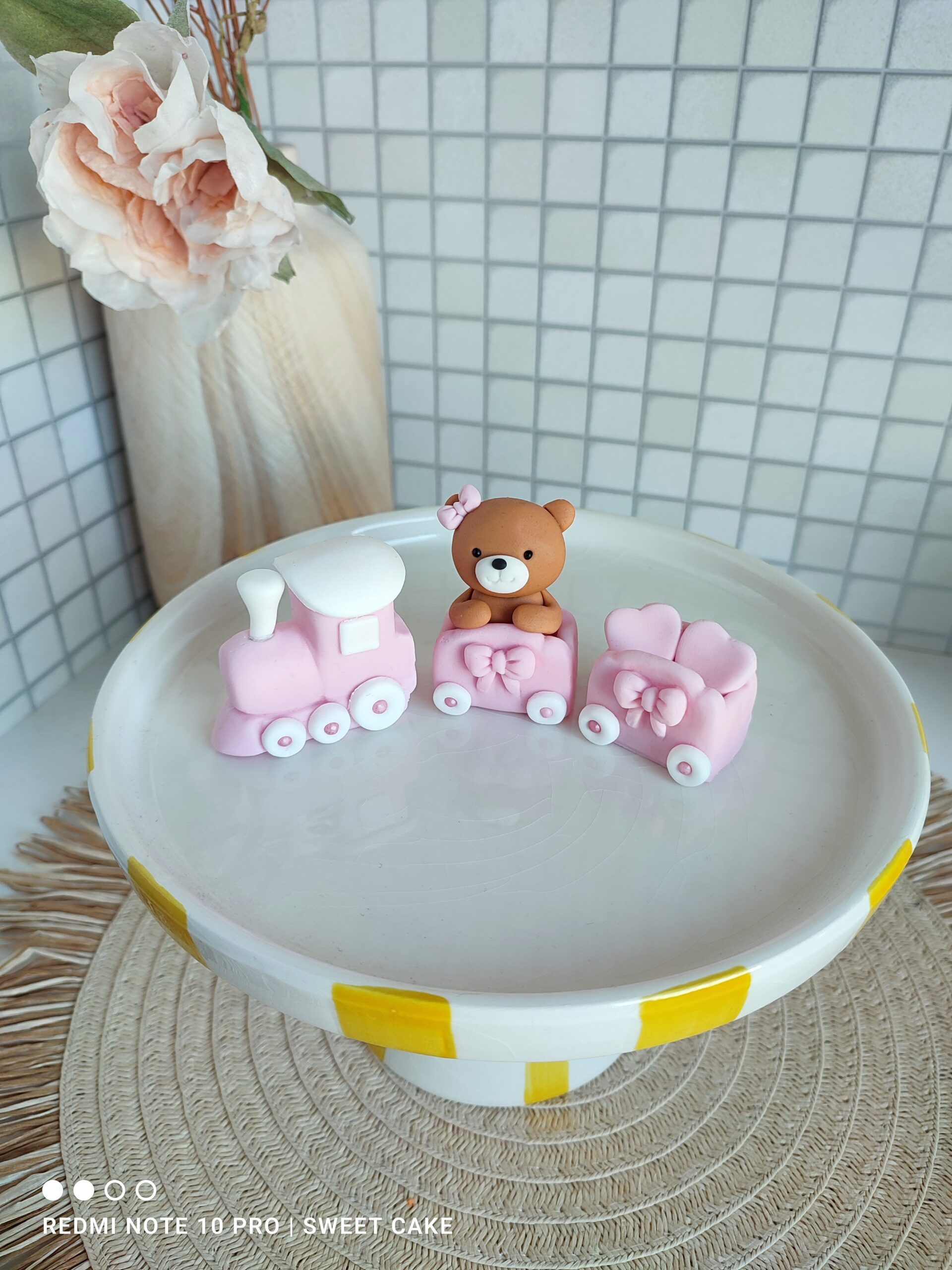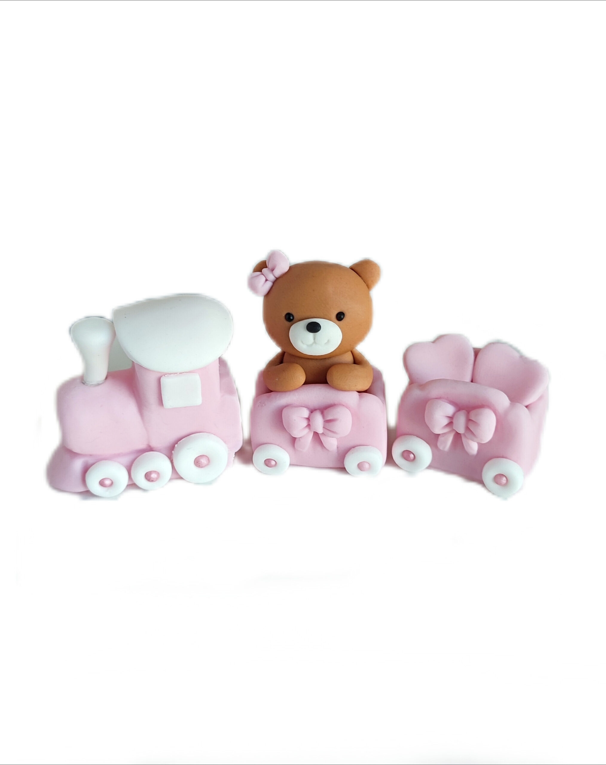 Figurka cukrowa 3D Pociąg zestaw z misiem różowy 1 szt