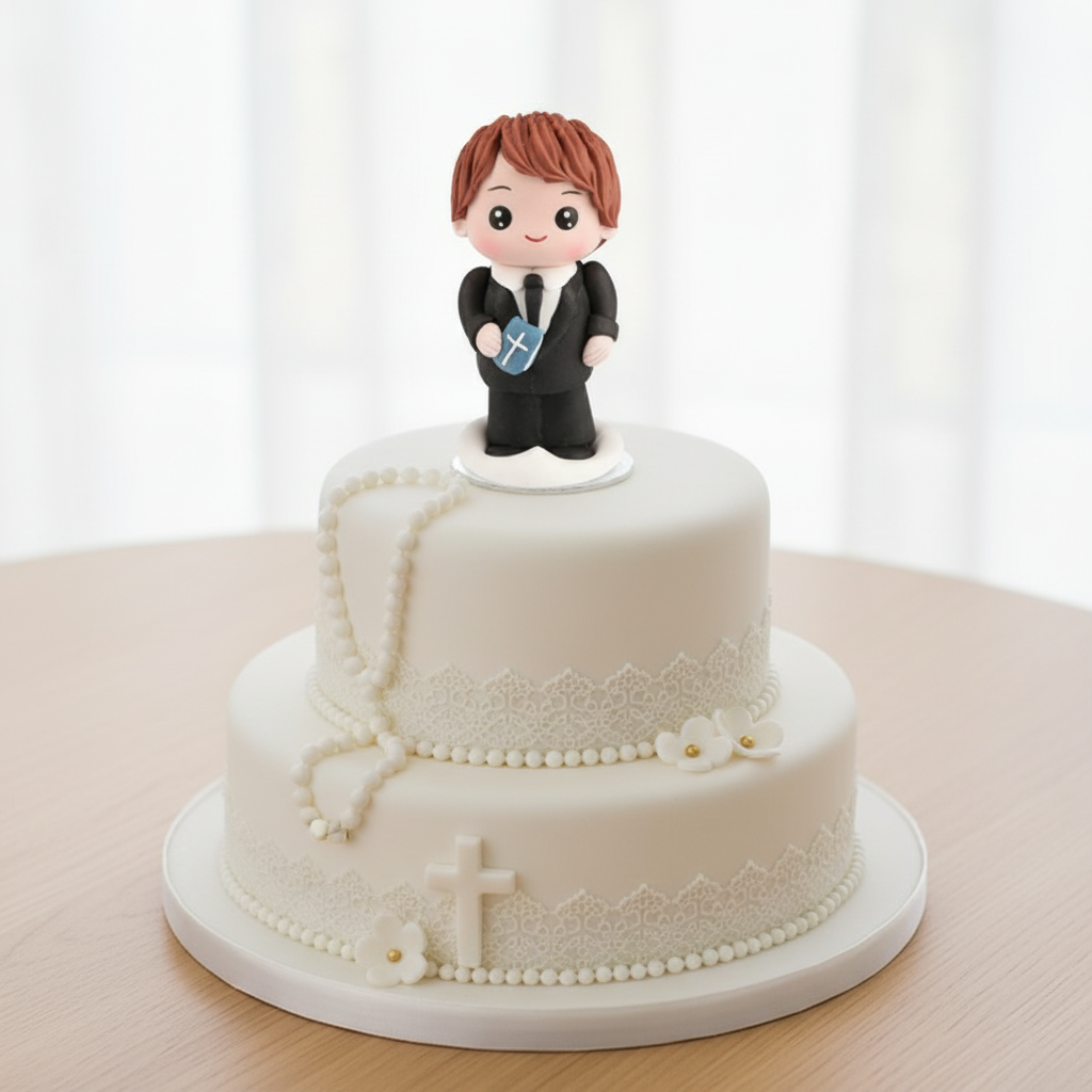 MODECOR Figurka cukrowa KOMUNIA CHŁOPCZYK 1 CHŁOPIEC NA KOMUNIĘ 27017 z książką