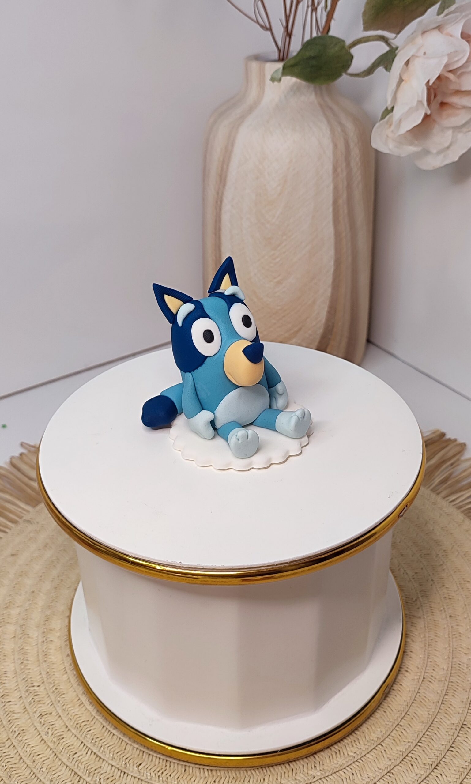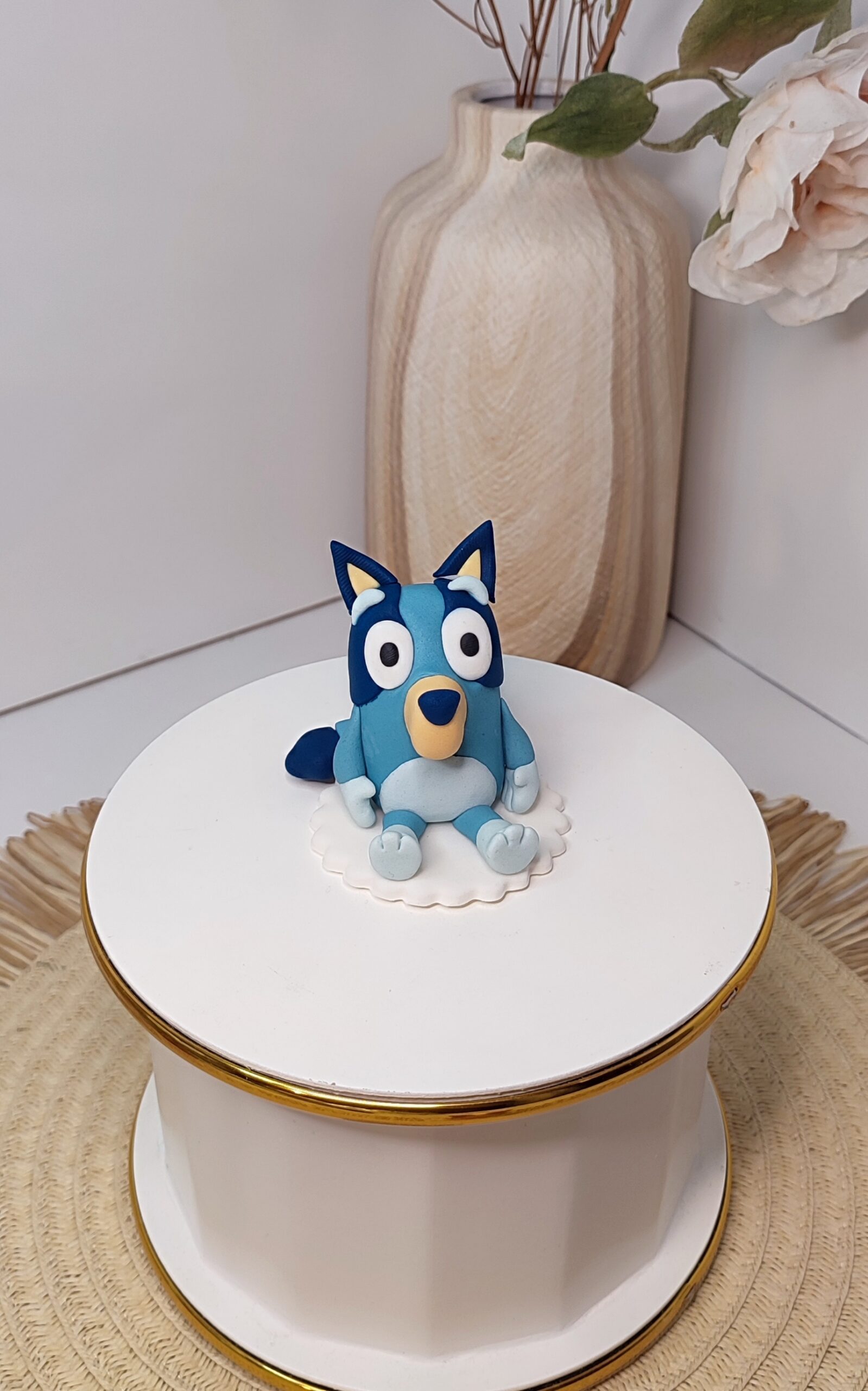 Figurka cukrowa na tort „BLUEY” 3D to pojedyncza, trójwymiarowa dekoracja wykonana z jadalnej masy cukrowej w odcieniach niebieskiego, przeznaczona do efektownego wykończenia tortu.