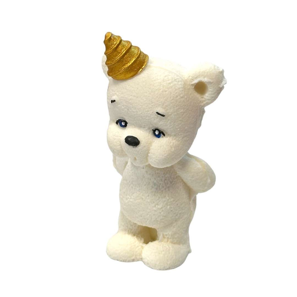 Figurka czekoladowa Miś w czapeczce (biały) w kształcie misia w czapeczce to uroczy dodatek do każdego wypieku. Utrzymana w subtelnej, biało złotej kolorystyce będzie idealną dekoracją na wiele okazji. Jej wyjątkowy wygląd nie tylko wywoła uśmiech na twarzach gości, ale również zapadnie w ich pamięć na długi czas!