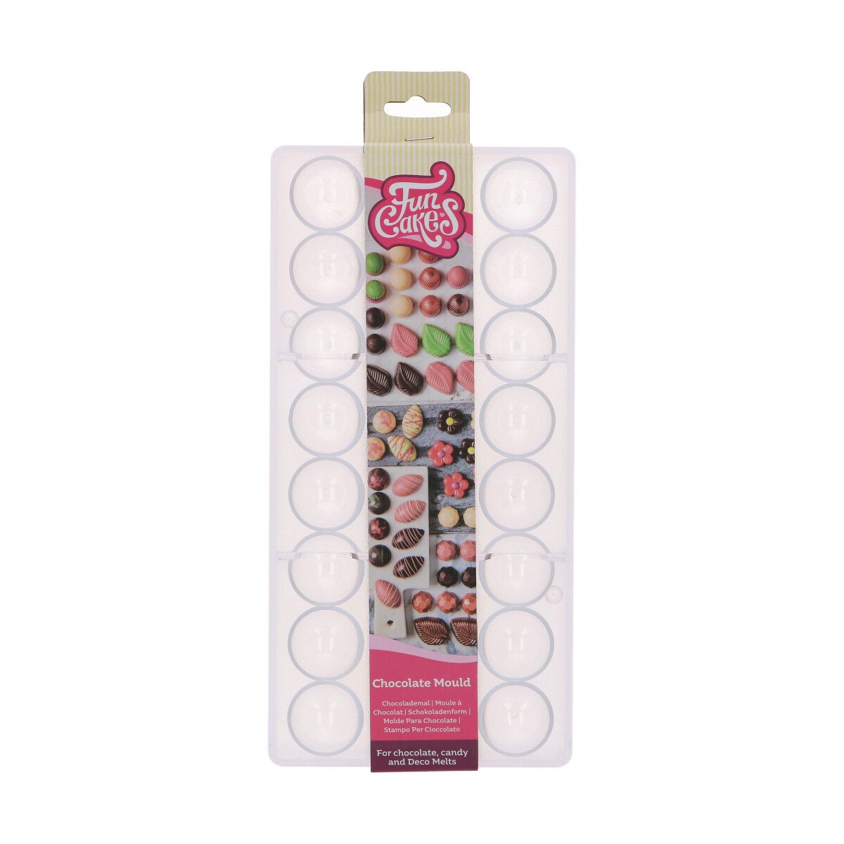 Stwórz idealne kopuły czekoladowe z FunCakes Chocolate Mould Dome. Ta solidna, przezroczysta forma jest idealna do produkcji eleganckich czekoladek w kształcie kopułki, idealnych jako dekoracje ciast, bazy bonbon lub jadalne kubki deserowe. Wykonane z trwałego polistyrenu dla czystego, profesjonalnego wyniku.