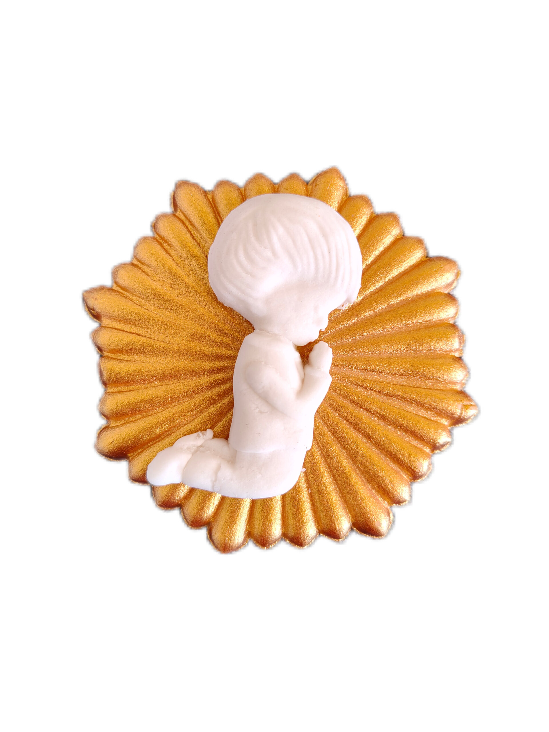 Delikatna tabliczka cukrowa w kształcie klasycznej hostii, z wytłoczonym złotym symbolem IHS (skrót od Jezus – Chrystus – Zbawiciel). Idealna jako dekoracja komunijna, ozdoba tortów, deserów lub drobny upominek na specjalne okazje religijne. Wykonana z czystego cukru, bez glutenu i konserwantów – rozpływa się w ustach, dodając blasku Twoim wypiekom. Wymiary: 7 cm średnicy, grubość 2 mm.