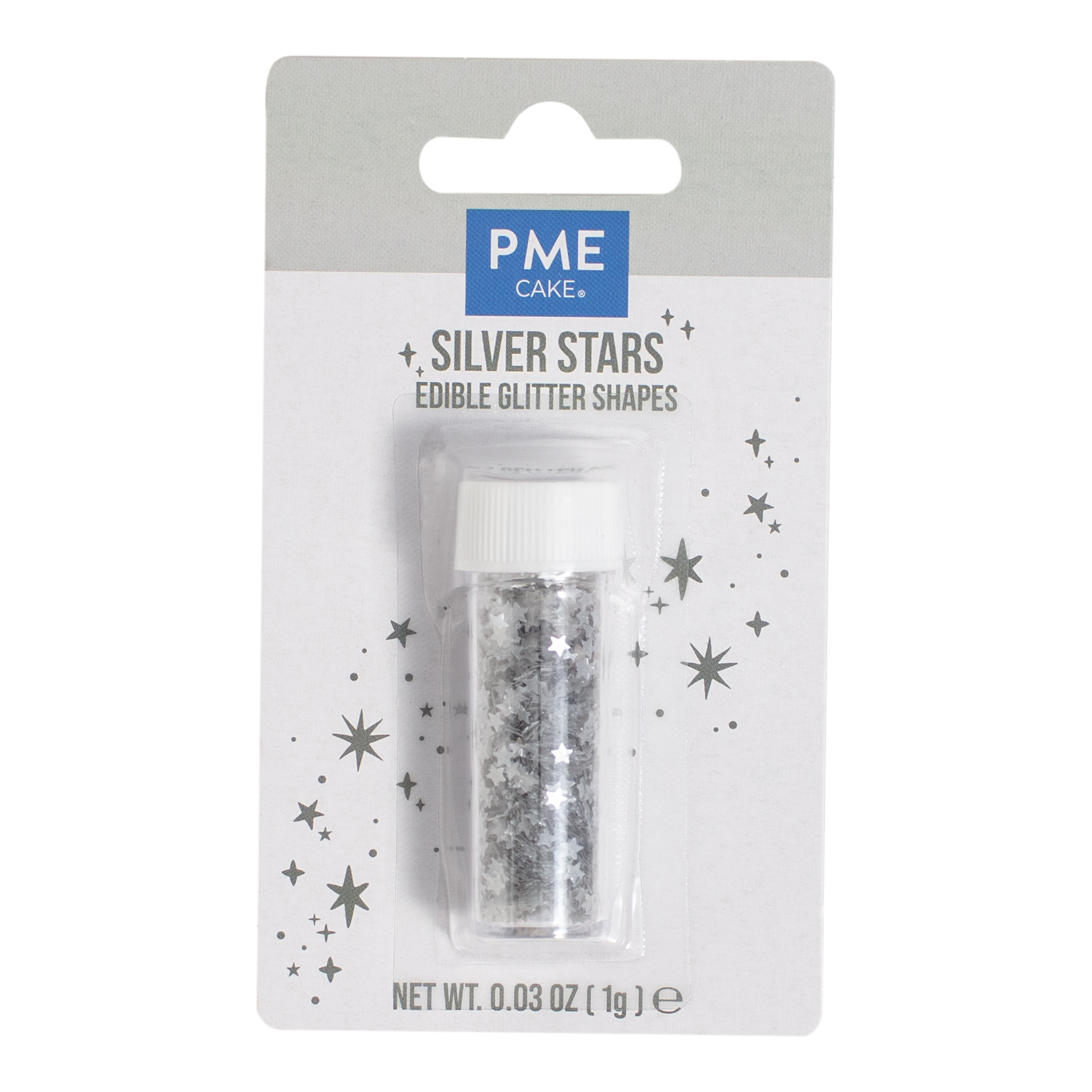 - Dostępne w olśniewającym złocie i lśniącym srebrze, jadalne brokatowe gwiazdki PME idealnie nadają się do nadania ciasteczkom i tortom lśniącego blasku. Mieszaj, dopasowuj lub pozostań przy jednym metalicznym odcieniu.