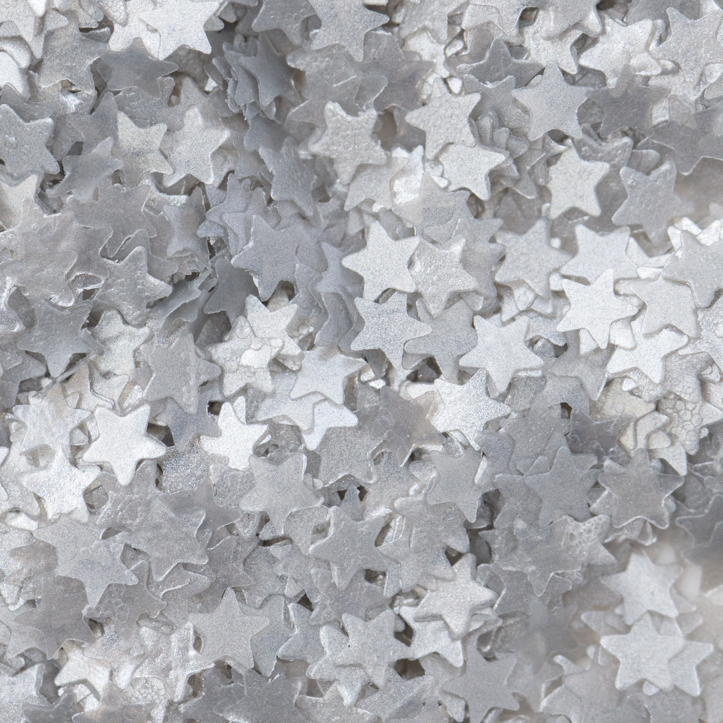 - 1 opakowanie mieszanki posypek w kształcie srebrnych gwiazdek. Nie zawiera barwników azotowych.