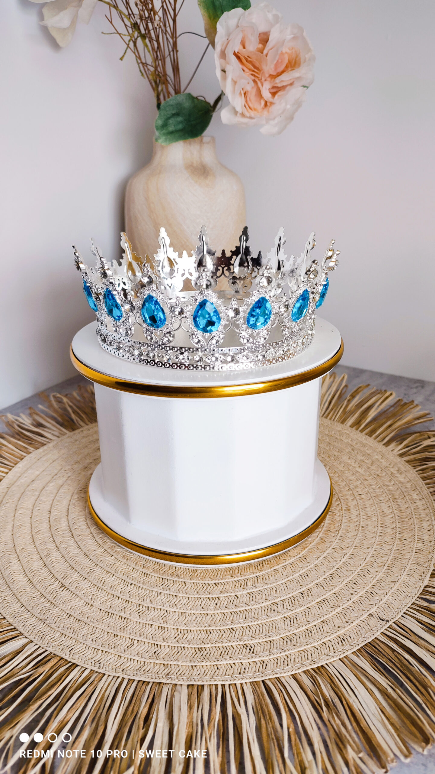 KORONA srebrna z błękitnym kamieniem 13 cm