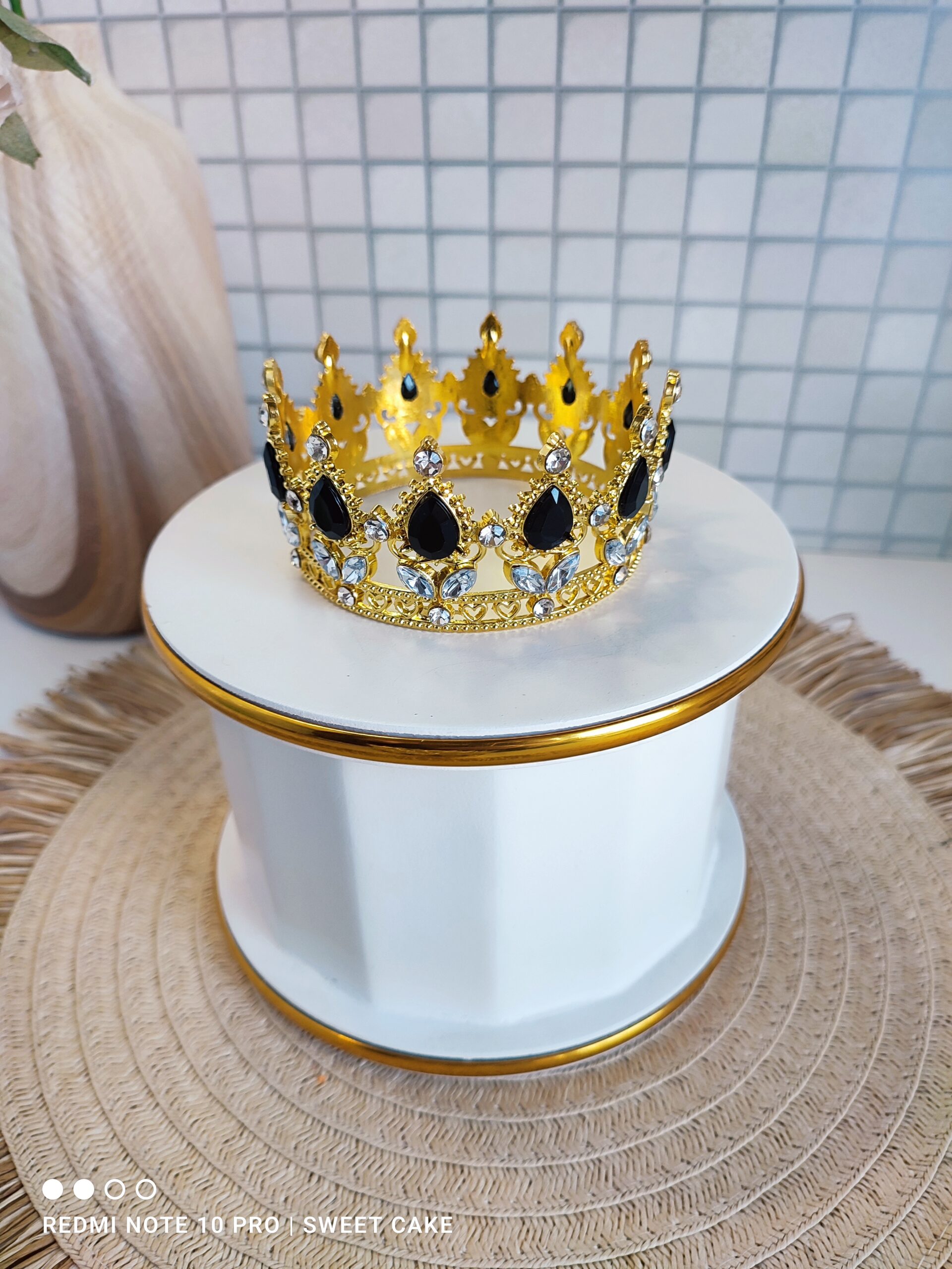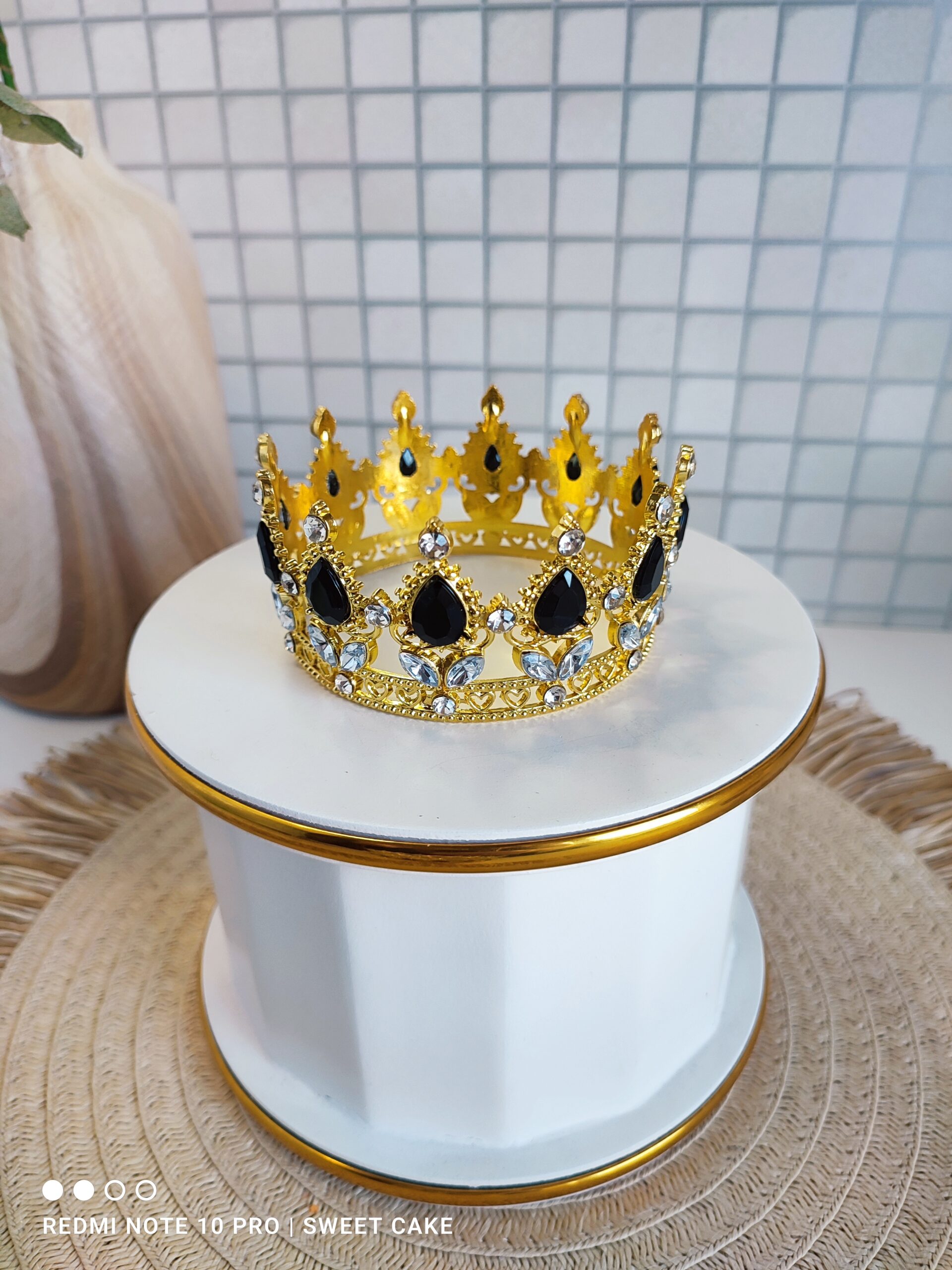 Elegancka i finezyjna korona wykonana z wysokiej jakości metalu, ozdobiona przepięknym kamieniem, który nadaje jej wyjątkowego blasku i subtelności.