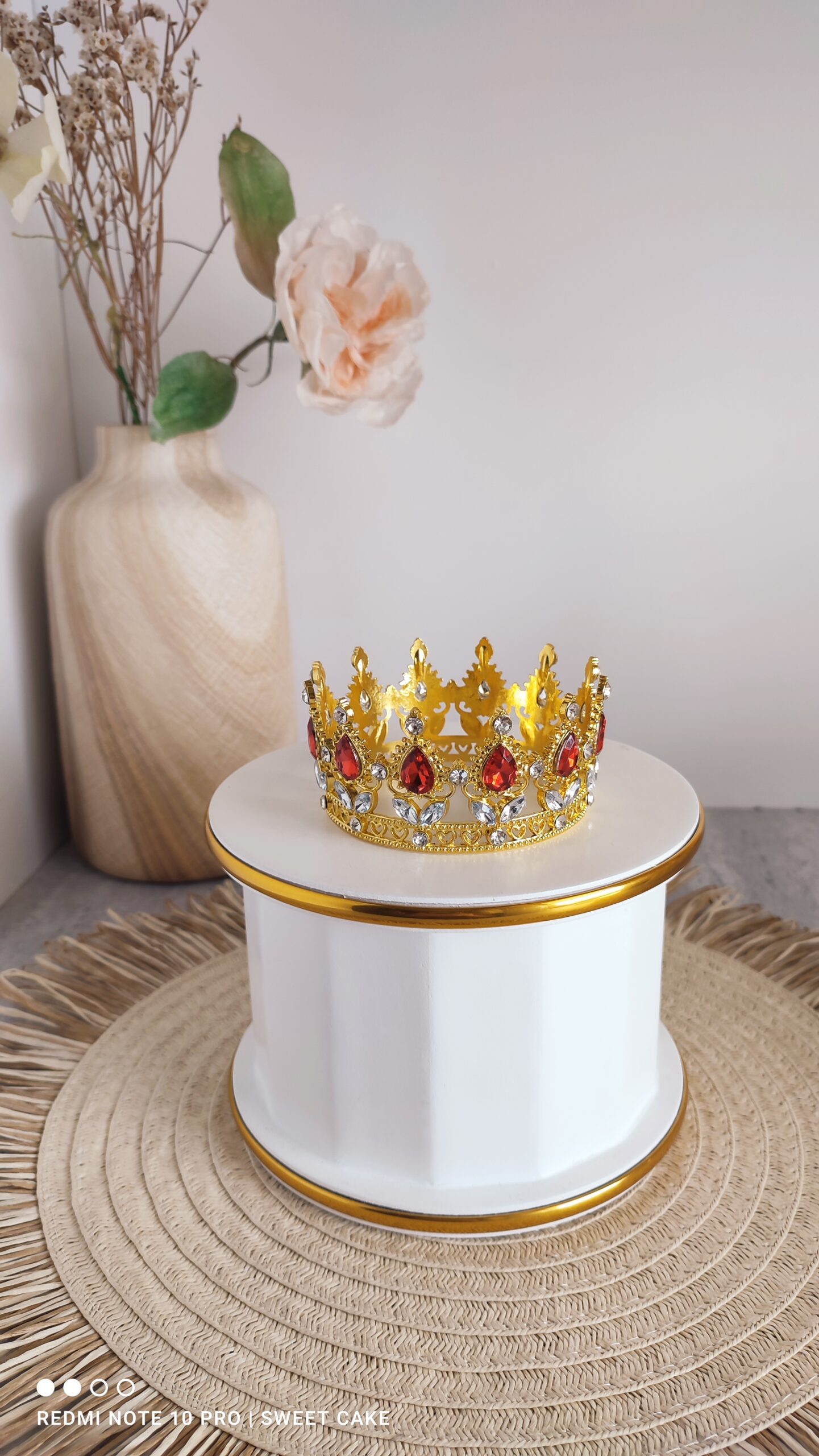 KORONA średnia Złota z czerwonym kamieniem 8cm