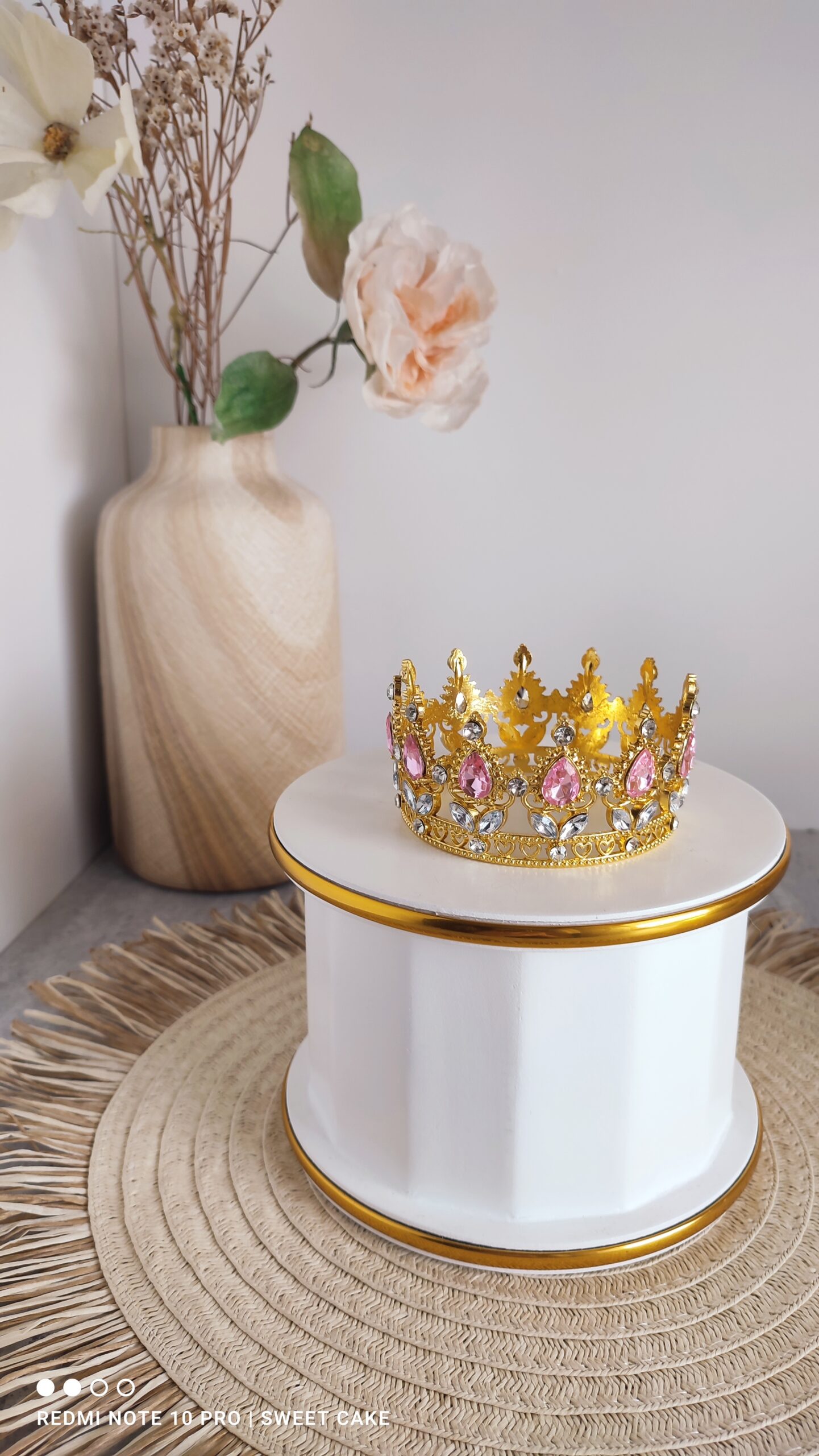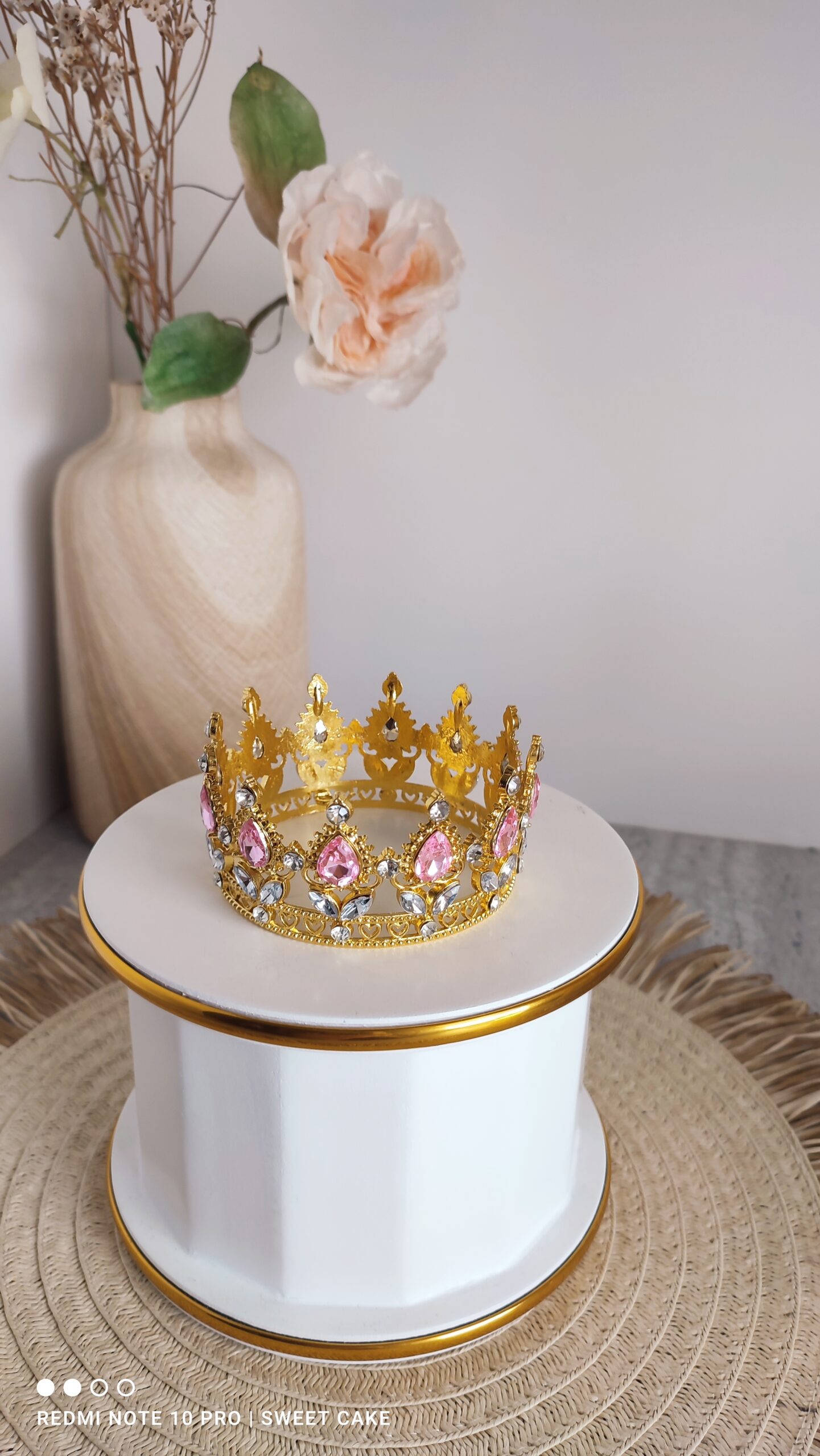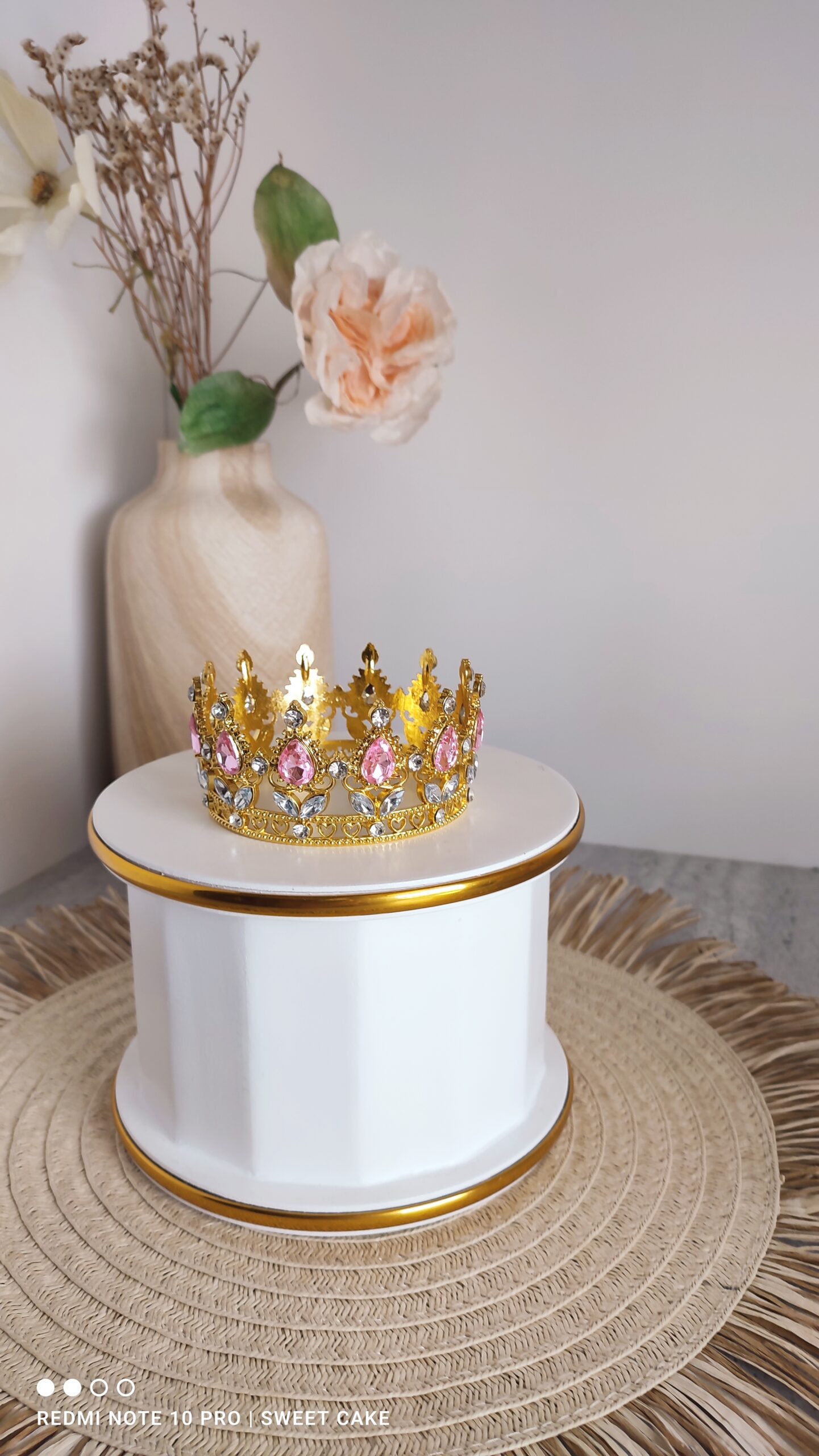 KORONA średnia Złota z Różowym kamieniem 8cm