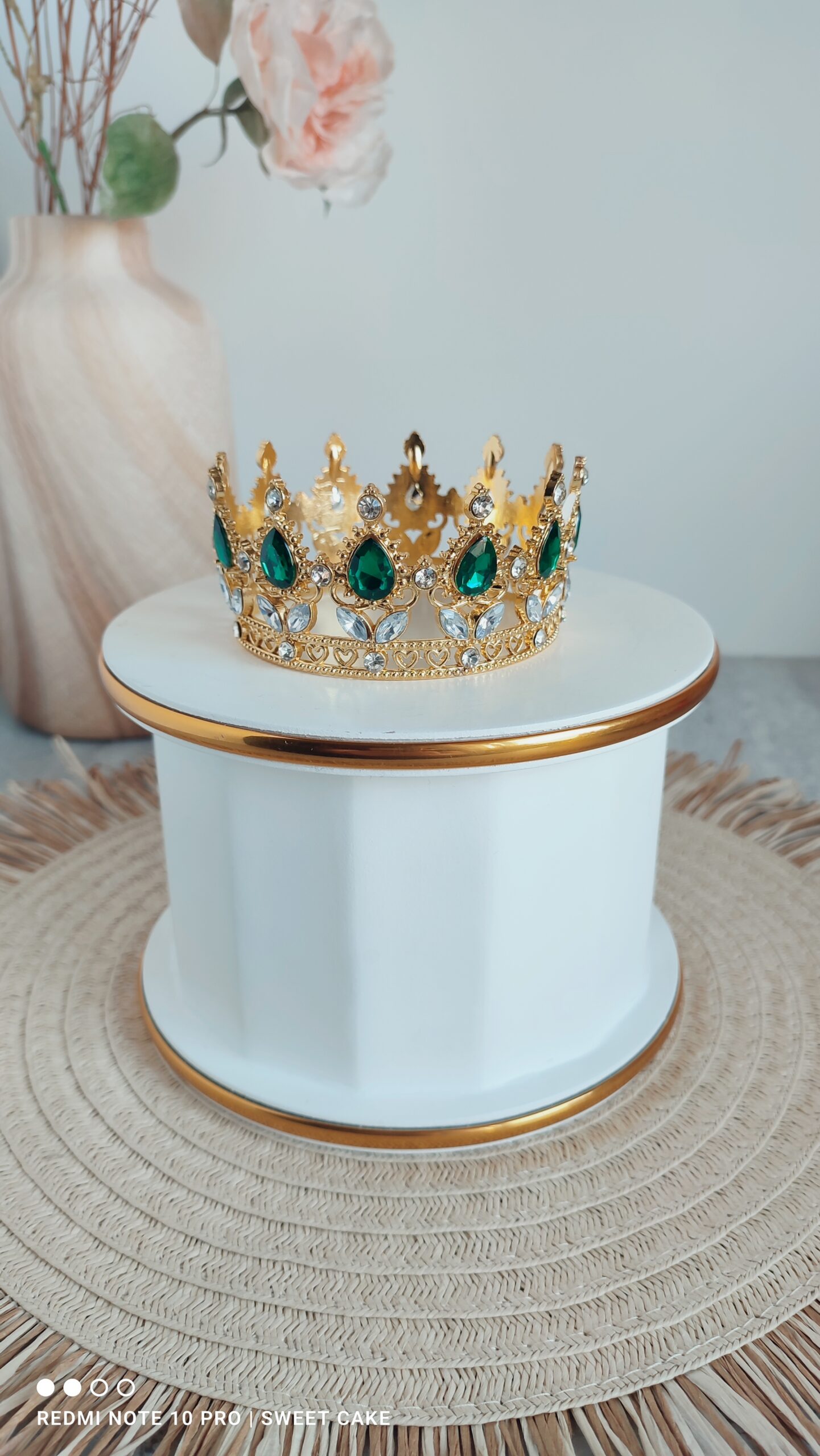 Elegancka i finezyjna korona wykonana z wysokiej jakości materiału, ozdobiona przepięknym kamieniem, który nadaje jej wyjątkowego blasku i subtelności.