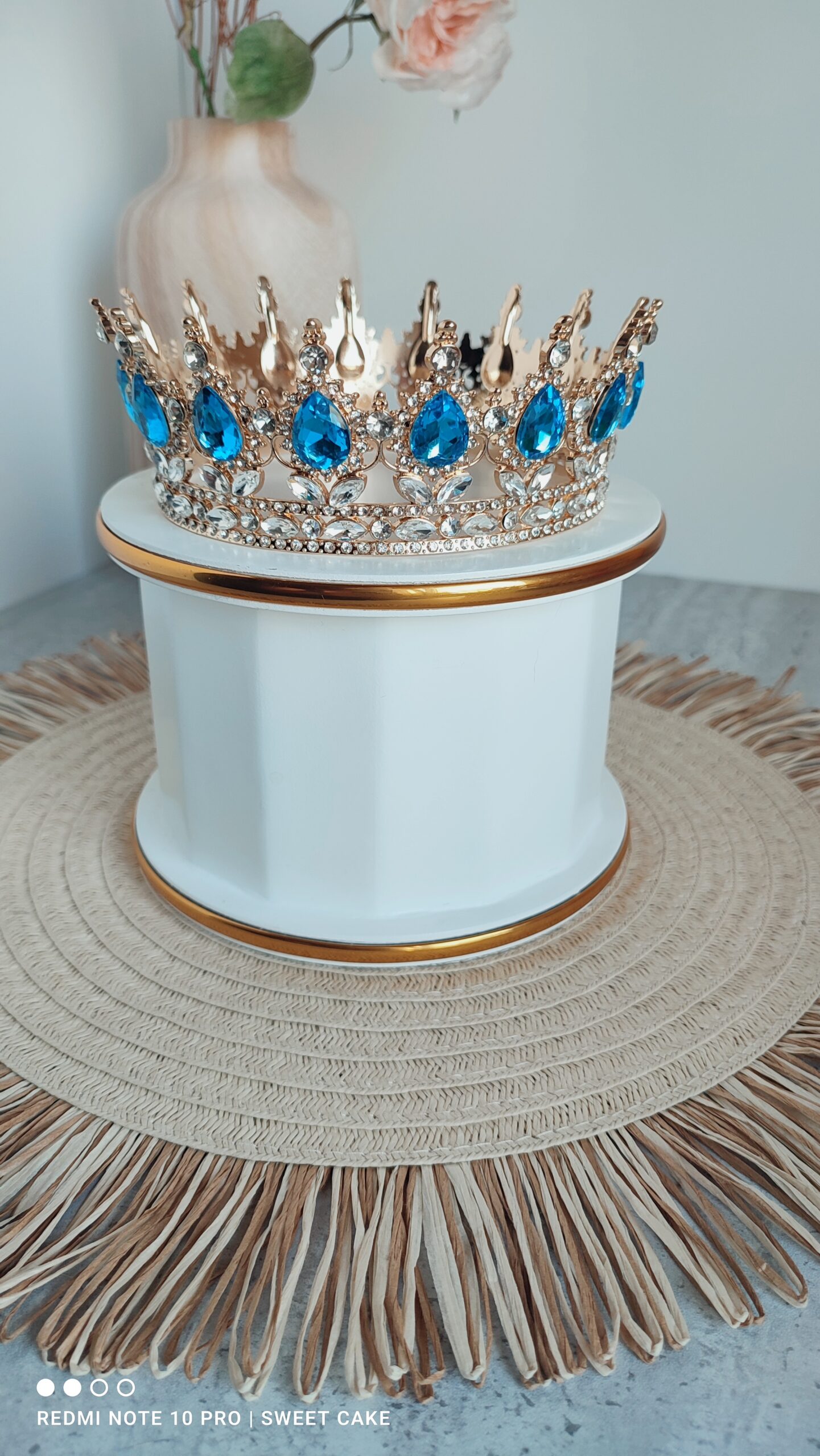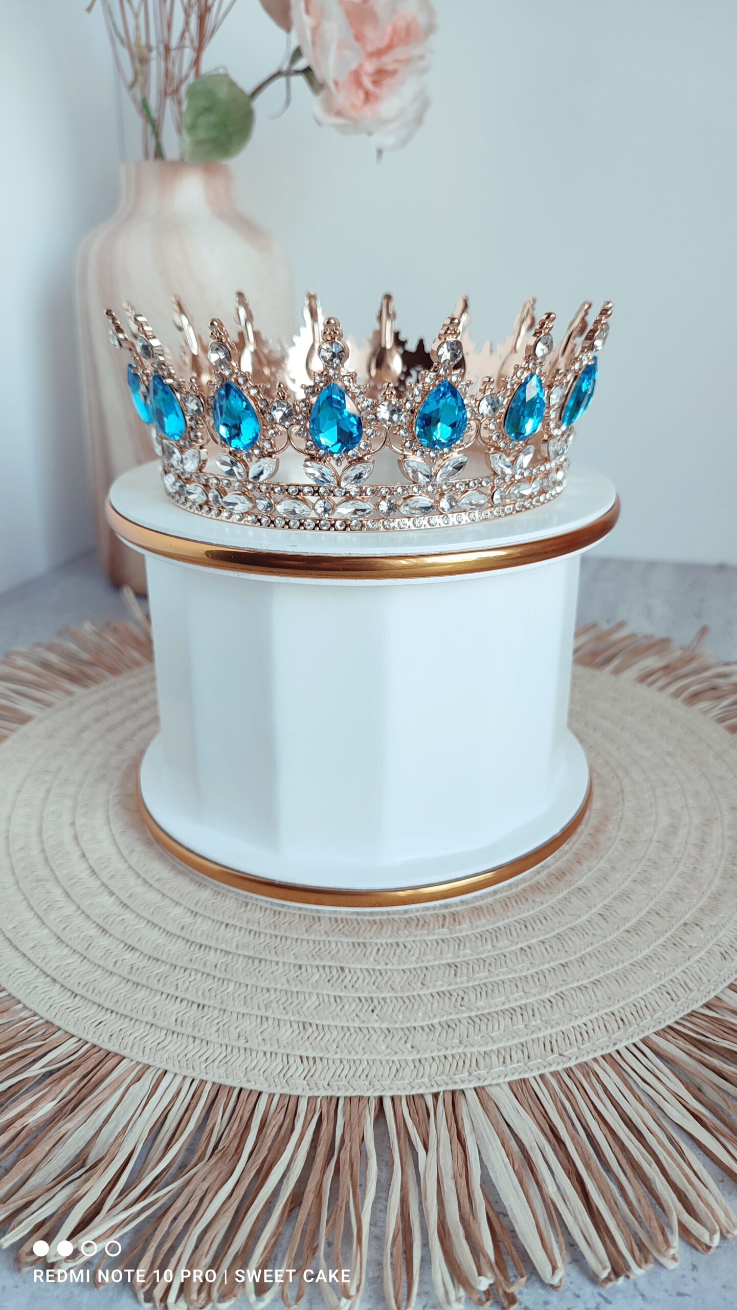 Elegancka i finezyjna korona wykonana z wysokiej jakości materiału,  ozdobiona przepięknym kamieniem, który nadaje jej wyjątkowego blasku i subtelności.