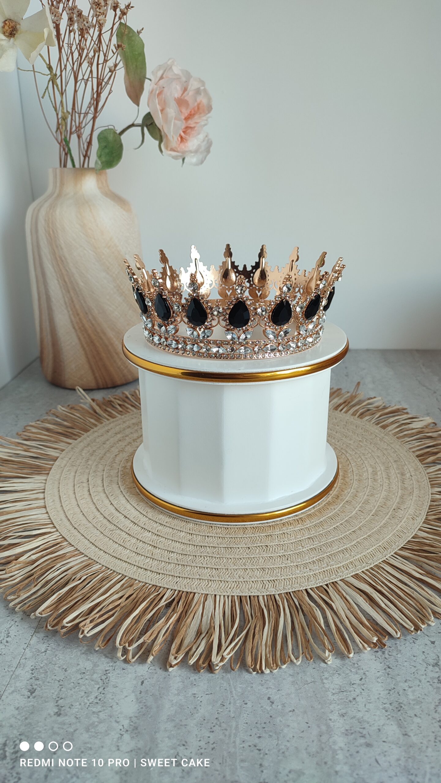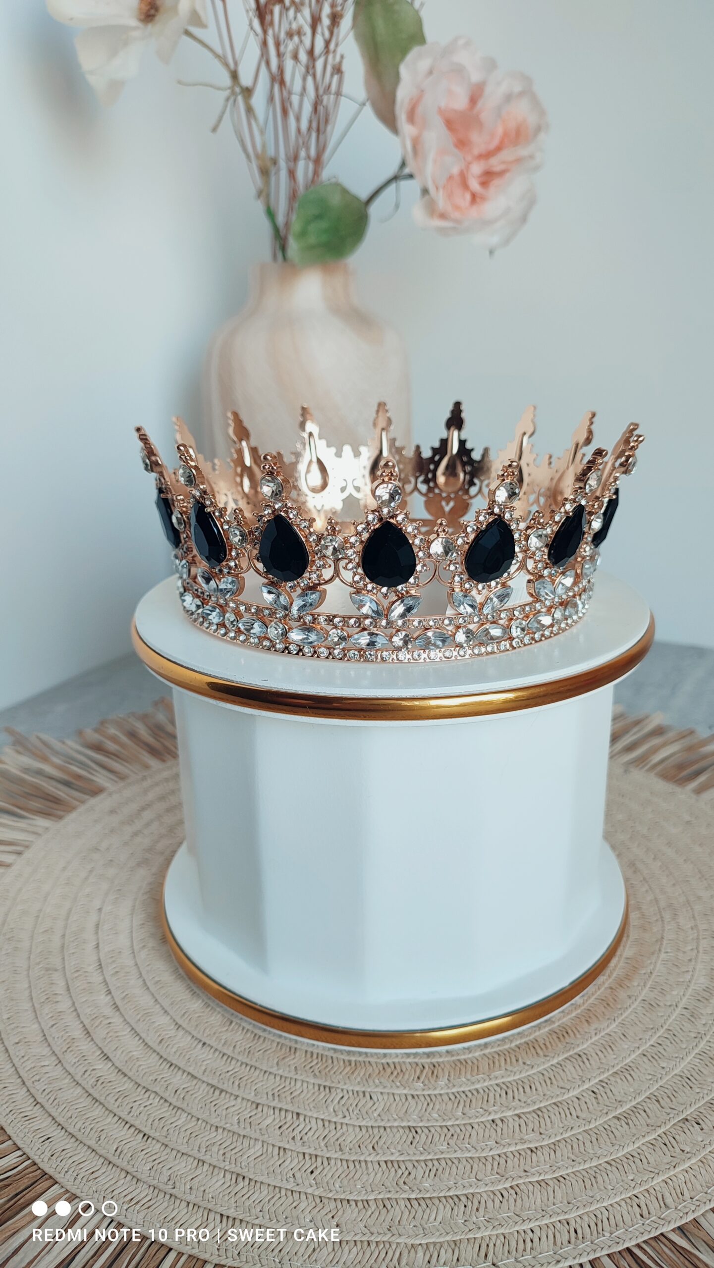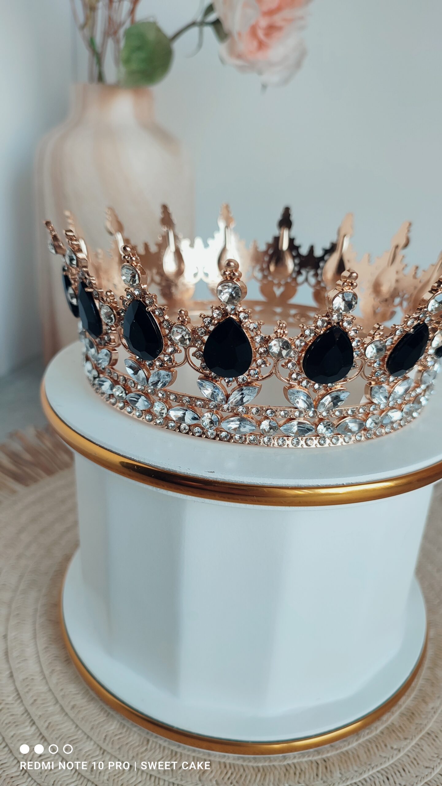 Elegancka i finezyjna korona wykonana z wysokiej jakości materiału, ozdobiona przepięknym kamieniem, który nadaje jej wyjątkowego blasku i subtelności.