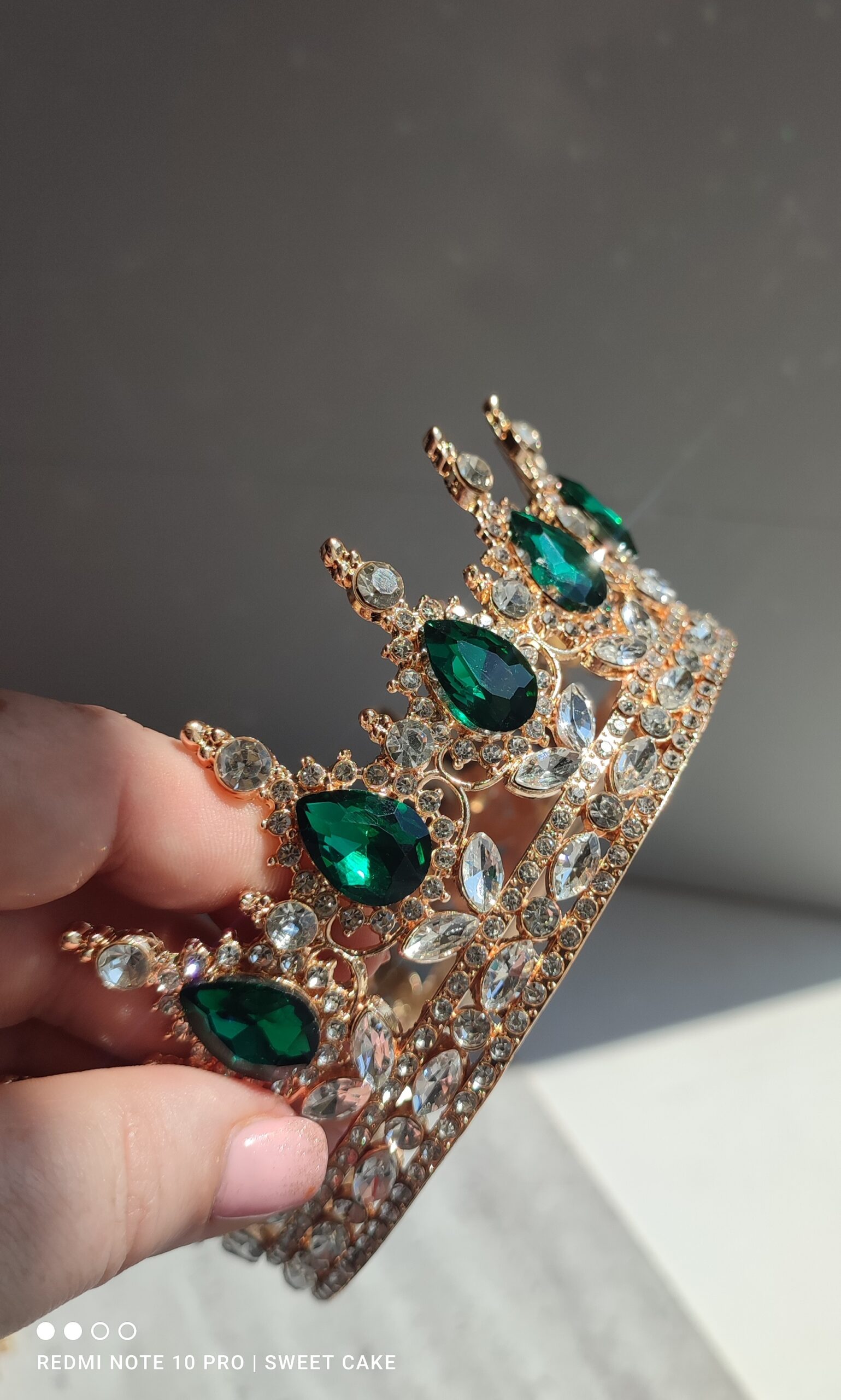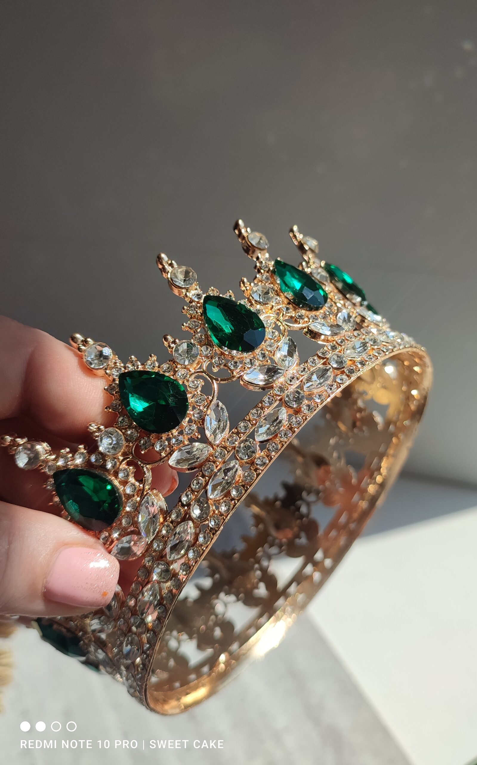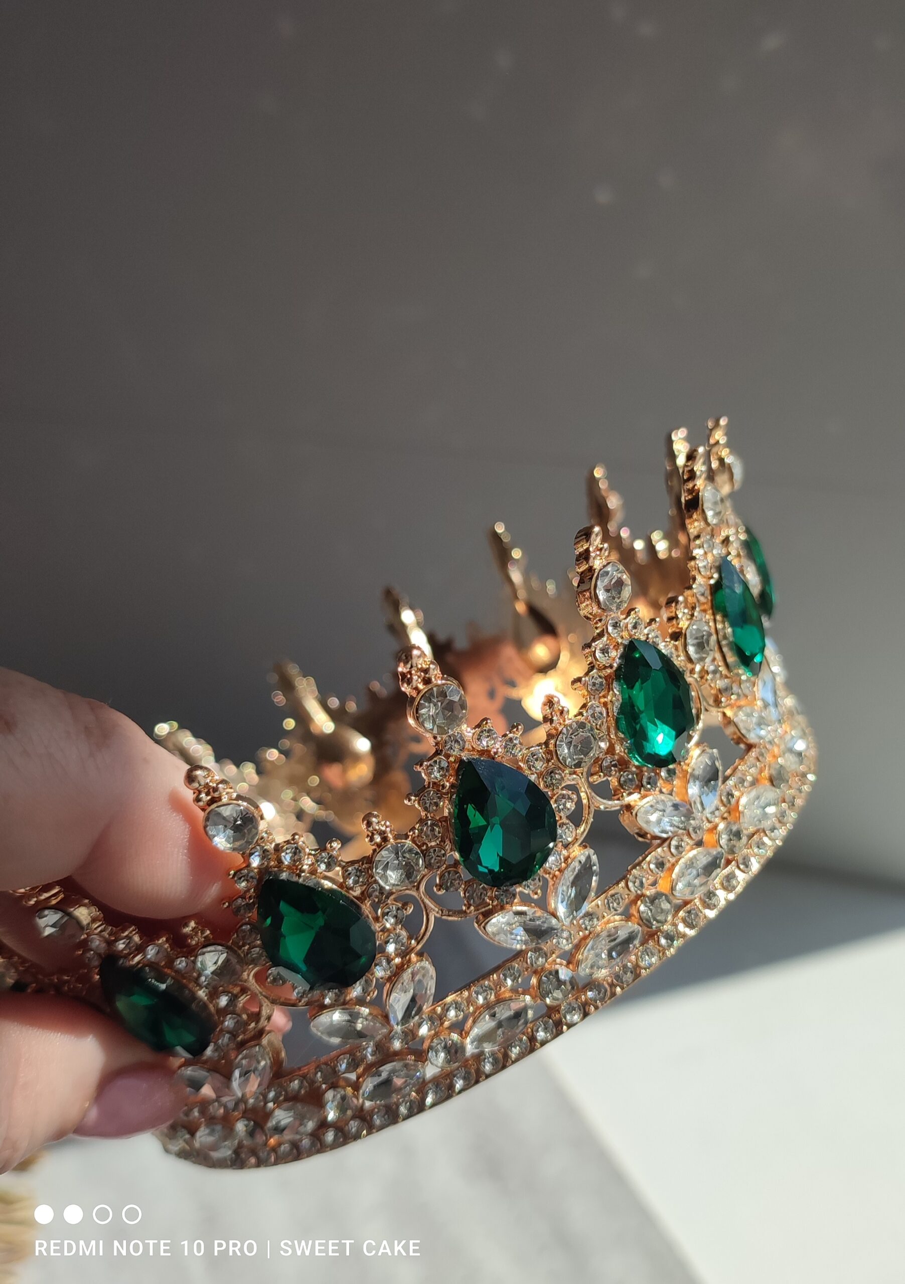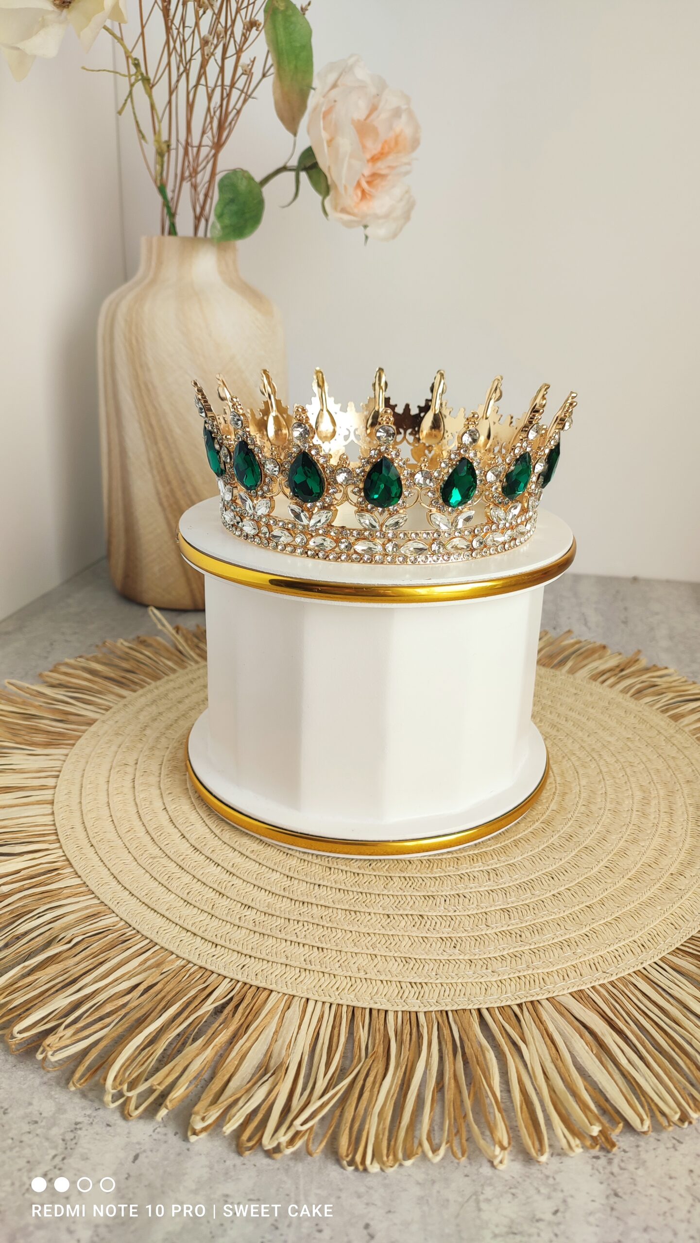 Elegancka i finezyjna korona wykonana z wysokiej jakości materiału,  ozdobiona przepięknym kamieniem, który nadaje jej wyjątkowego blasku i subtelności.