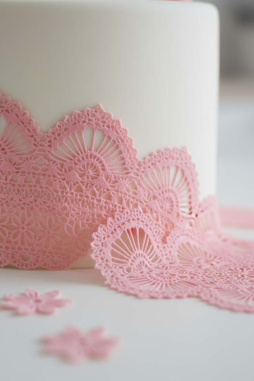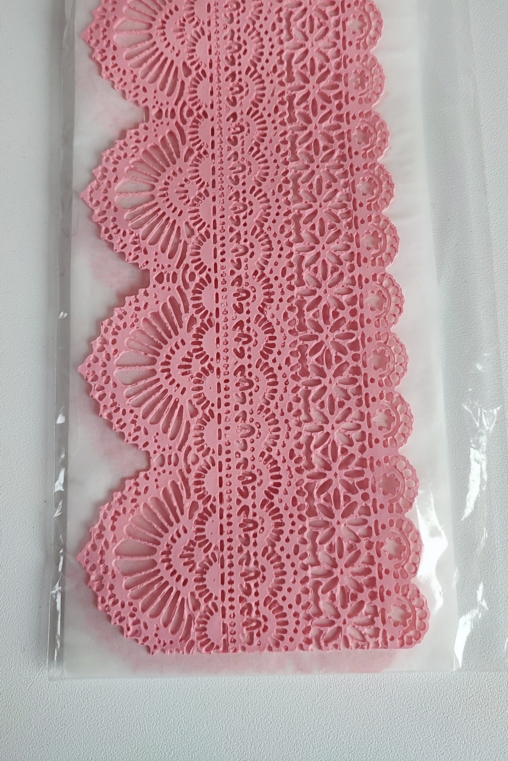 Jej sposób użycia jest również bardzo prosty. Taka jedna, niepozorna koronka daje naprawdę mnóstwo możliwości! Są jednak pewne zasady, o których podczas zdobienia wypieków należy pamiętać. Przed udekorowaniem suchych powierzchni (np. tortu) trzeba zwilżyć tył koronki wodą czy syropem klonowym. To działanie sprawi, że nasz dodatek będzie się mocno trzymał i nie odklei się od dekorowanego wyrobu cukierniczego. Jeżeli decydujemy się na przyozdabianie bitej śmietany, napojów, deserów mlecznych czy lodów, należy koronkę nałożyć od razu przed podaniem. Dzięki temu działaniu będzie się ona prezentowała świeżo i wręcz nienagannie w kluczowym momencie każdej imprezy. Jeżeli nie uda Ci się wykorzystać całej koronki – mamy dla Ciebie patent. Nieużytą jej cześć należy hermetycznie zapakować, aby zapobiec jej wyschnięciu. Przez to, jej niewykorzystana partia zachowa swój piękny wygląd i będzie gotowa do ponownego użycia!