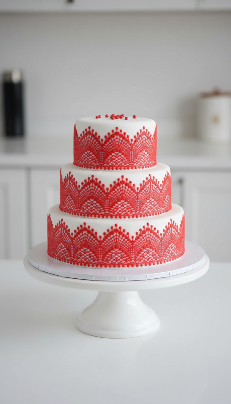KORONKA NA TORT 01 CZERWONA Z MASY CUKROWEJ