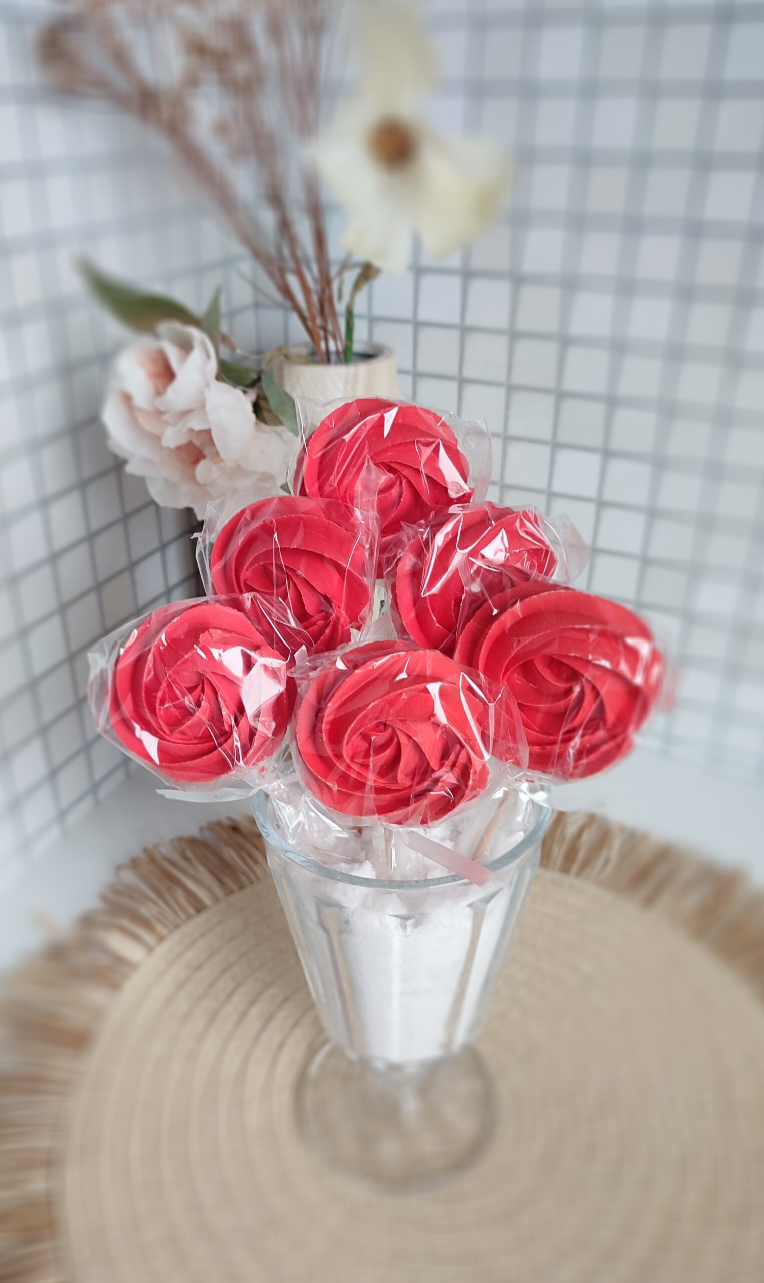 Lizaki bezowe na patyku w pięknym Czerwone kolorze to idealna dekoracja do tortów i deserów. Delikatne, chrupiące bezy o słodkim smaku, uformowane w kształt lizaka, dodają uroku każdemu wypiekowi. Doskonale sprawdzą się na przyjęciach, urodzinach czy baby shower, wprowadzając wyjątkową, elegancką i kolorową ozdobę. Każdy lizak jest starannie wykonany, by zachwycać wyglądem i smakiem. Produkt pakowany pojedynczo, co pozwala na łatwe dopasowanie do różnych potrzeb dekoracyjnych.