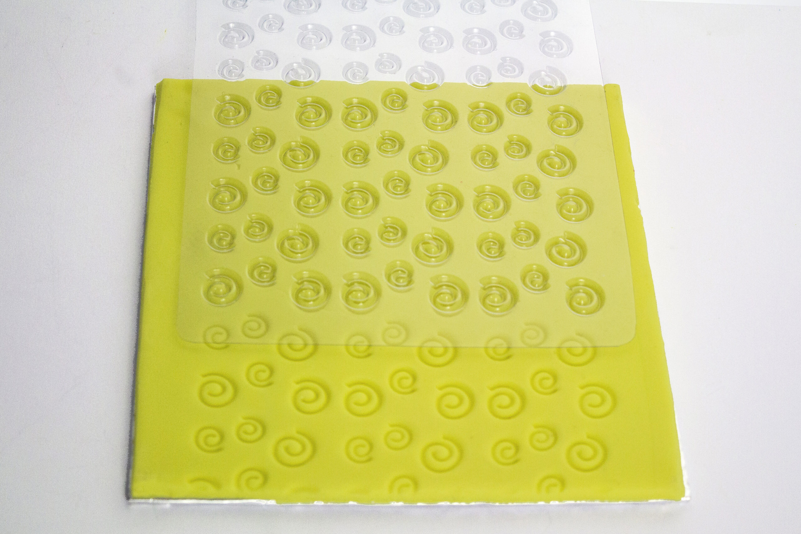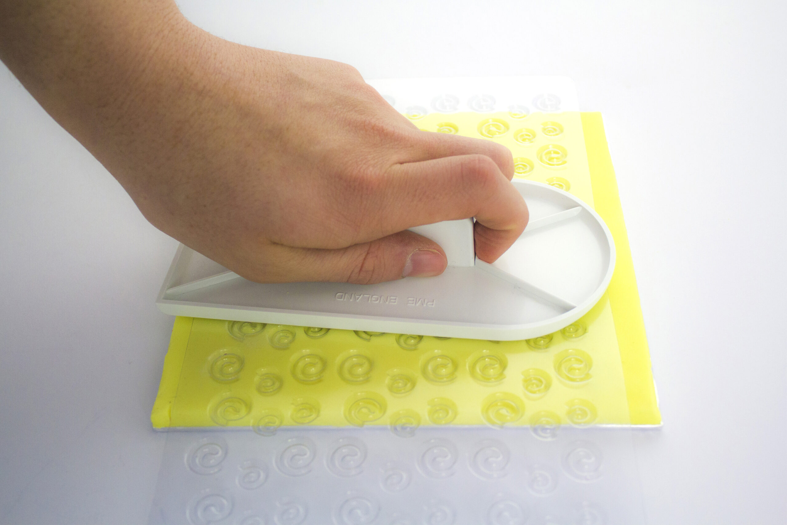 Po prostu przewiń górę masy za pomocą walca lub rozłóż stopioną masę cukrową (np. przyciski cukierków) na powierzchni maty – zyskasz unikalne wykończenie w każdym projekcie.