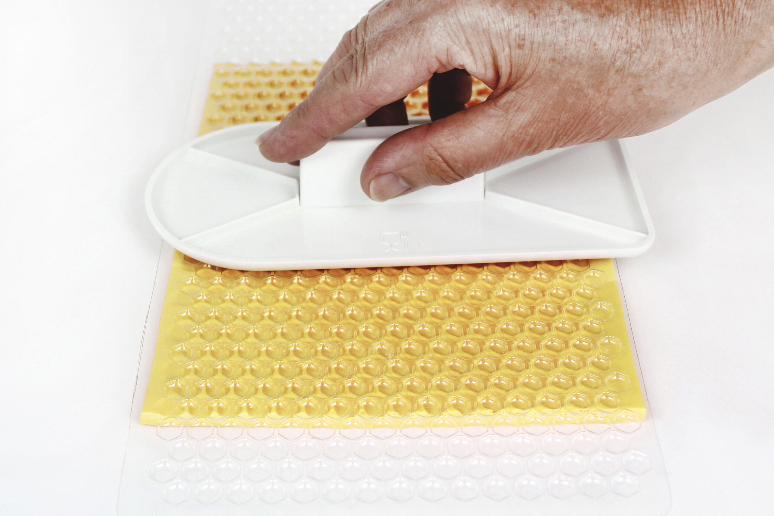 • Łatwość użycia: plastykowa powierzchnia nie przywiera, ułatwia czyszczenie i wielokrotne stosowanie.