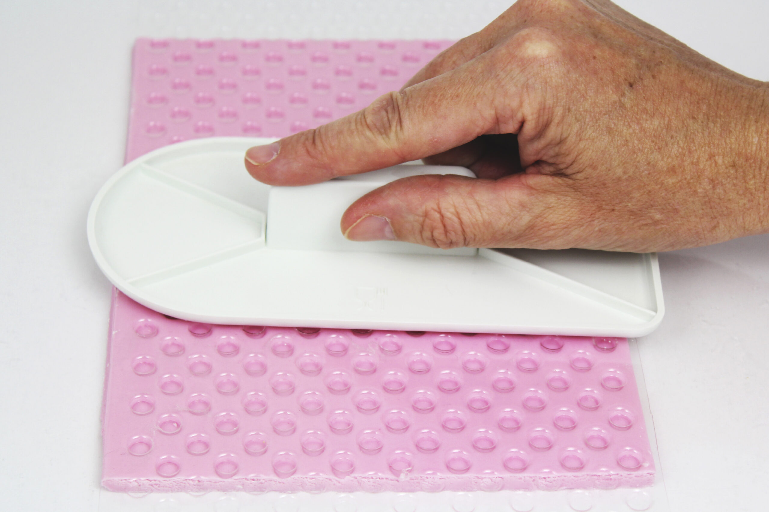 Po prostu przewiń górę masy za pomocą walca lub rozłóż stopioną masę cukrową (np. przyciski cukierków) na powierzchni maty – zyskasz unikalne wykończenie w każdym projekcie.