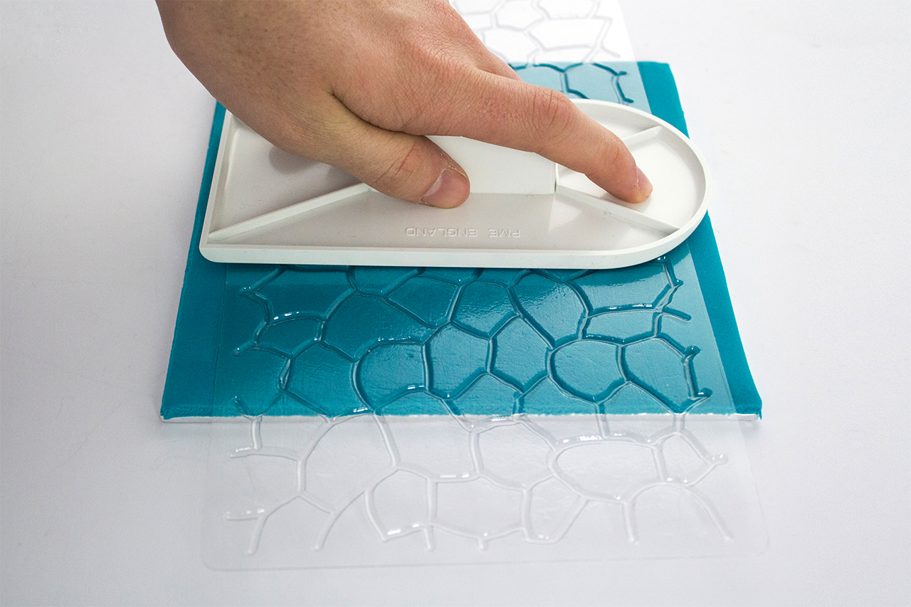 Po prostu przewiń górę masy za pomocą walca lub rozłóż stopioną masę cukrową (np. przyciski cukierków) na powierzchni maty – zyskasz unikalne wykończenie w każdym projekcie.