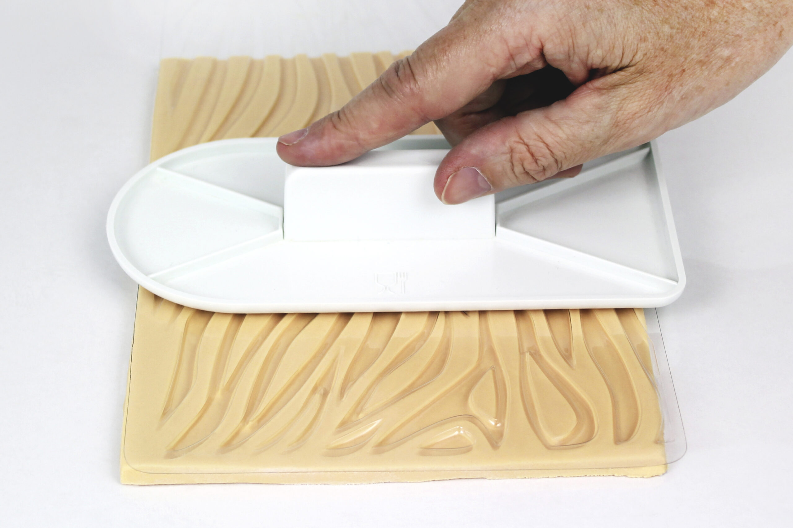 Po prostu przewiń górę masy za pomocą walca lub rozłóż stopioną masę cukrową (np. przyciski cukierków) na powierzchni maty – zyskasz unikalne wykończenie w każdym projekcie.