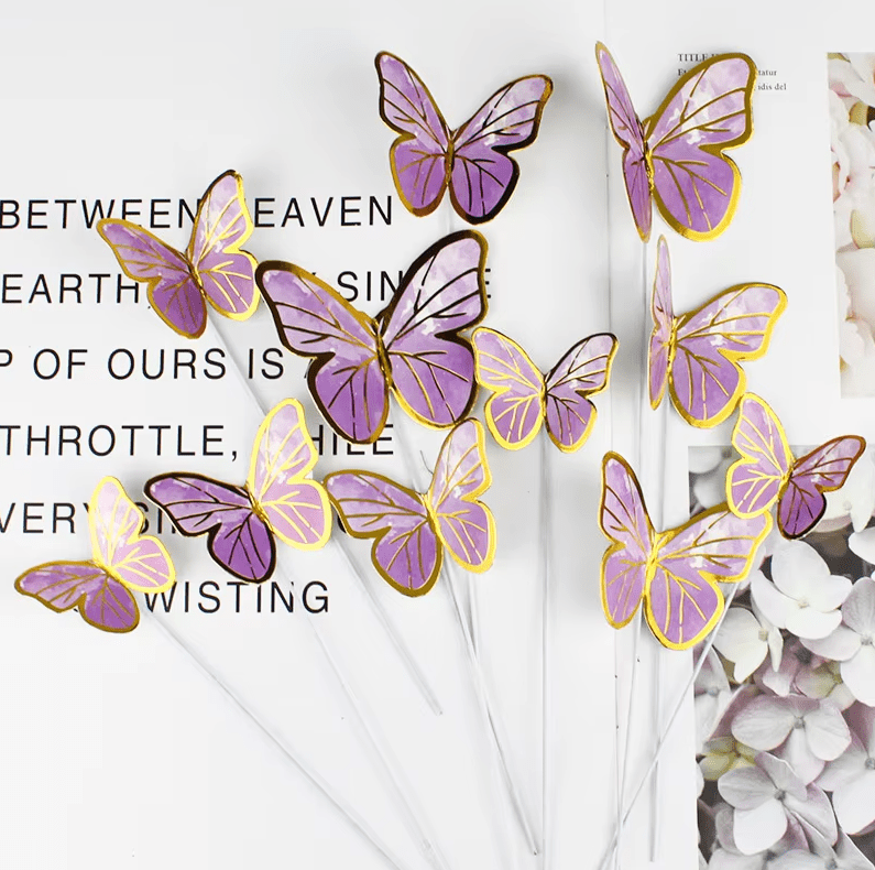 Toppery/Motyle na drucikach do dekoracji, na tort 10 szt fioletowe