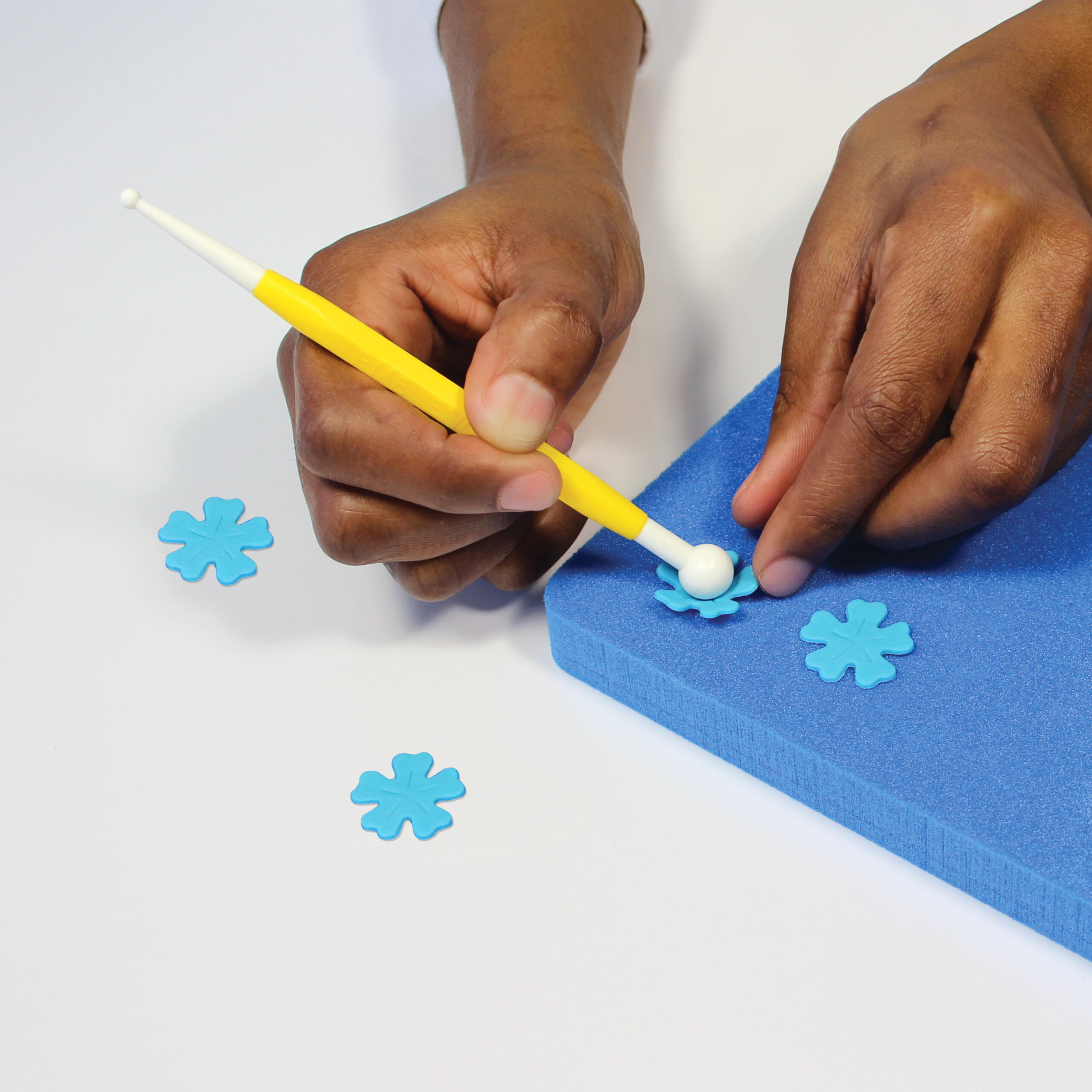 Aby formować płatki, umieść je na podkładce piankowej. Ułóż narzędzie kulowe w żądanym miejscu i mocno dociśnij.