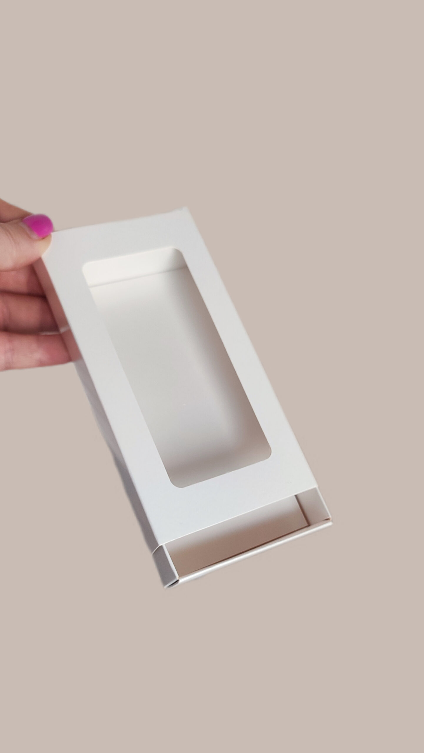 Opakowanie na czekoladę z wieczkiem i okienkiem 16,5×8,5×2,5 cm PERŁOWE