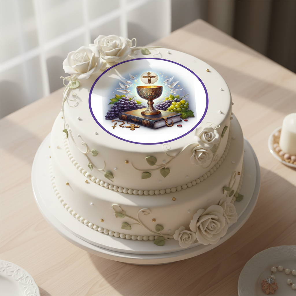 Opis opłatka na tort komunijny – wzór N37 rozmiar kółka 20 cm
