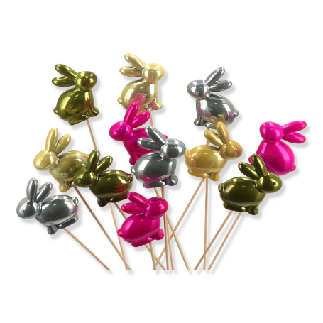 Ozdoba na patyku Zajączki na piku 1 szt do koszyka na wielkanoc