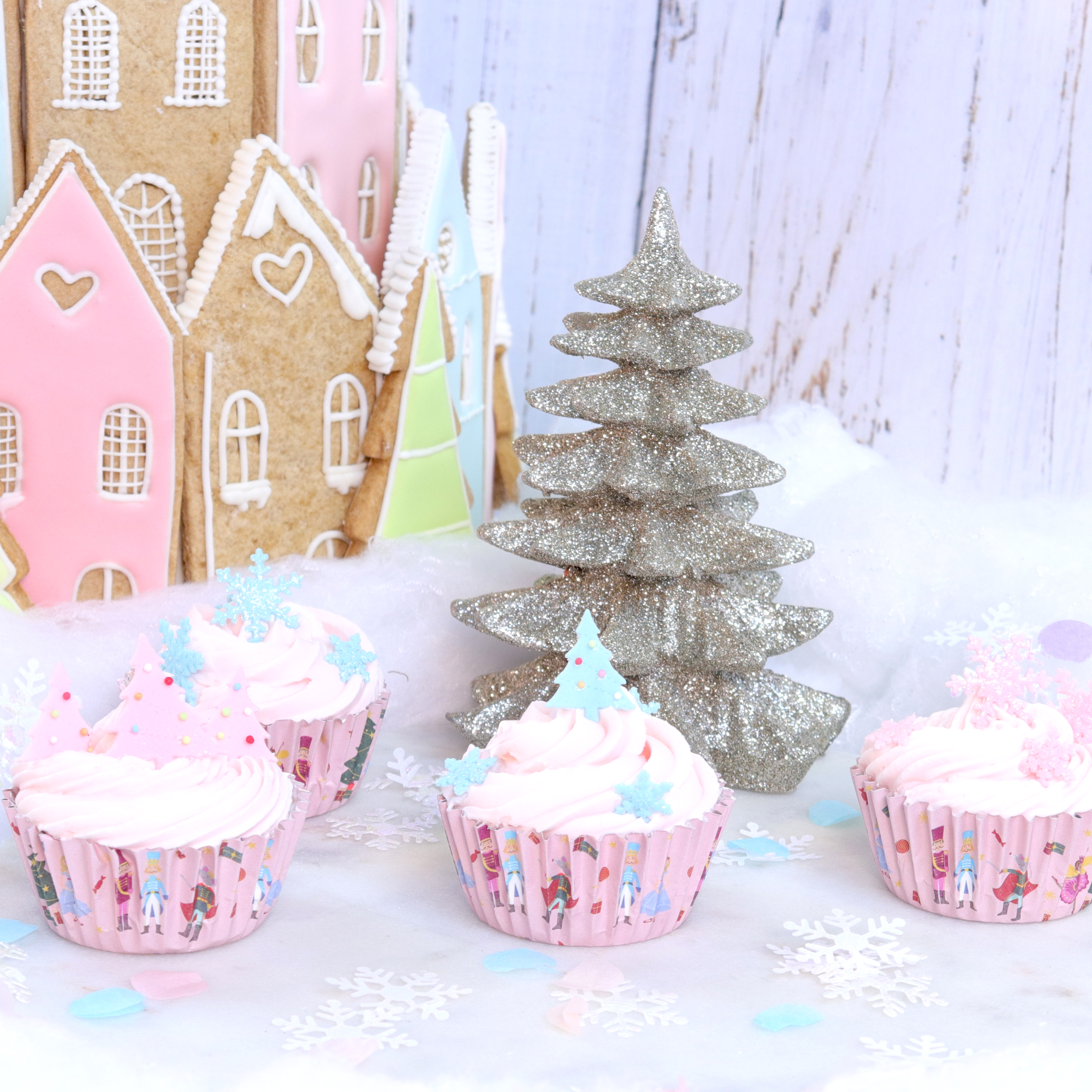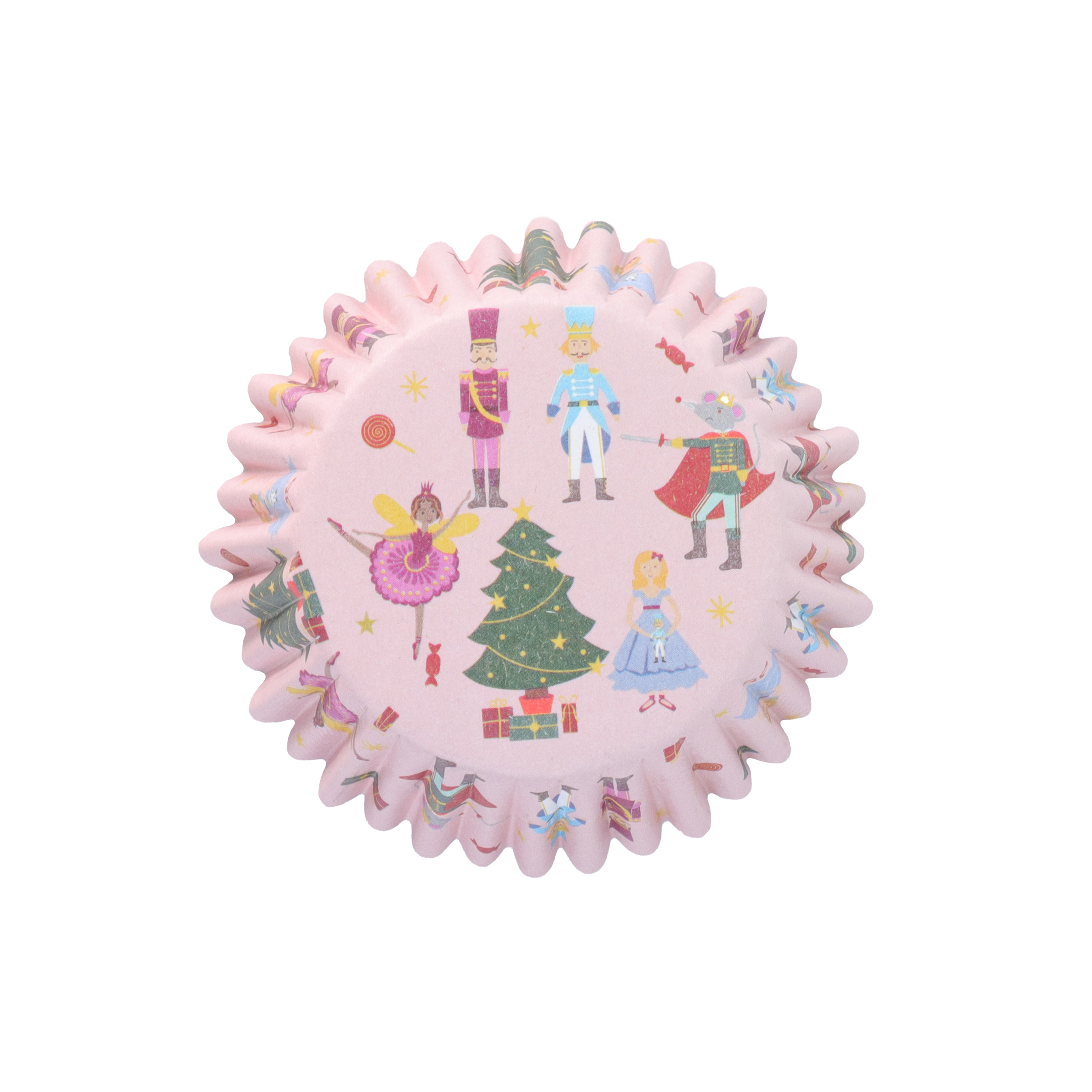 Zestaw 30 papilotek z różowym wzorem i motywem Dziadka do orzechów