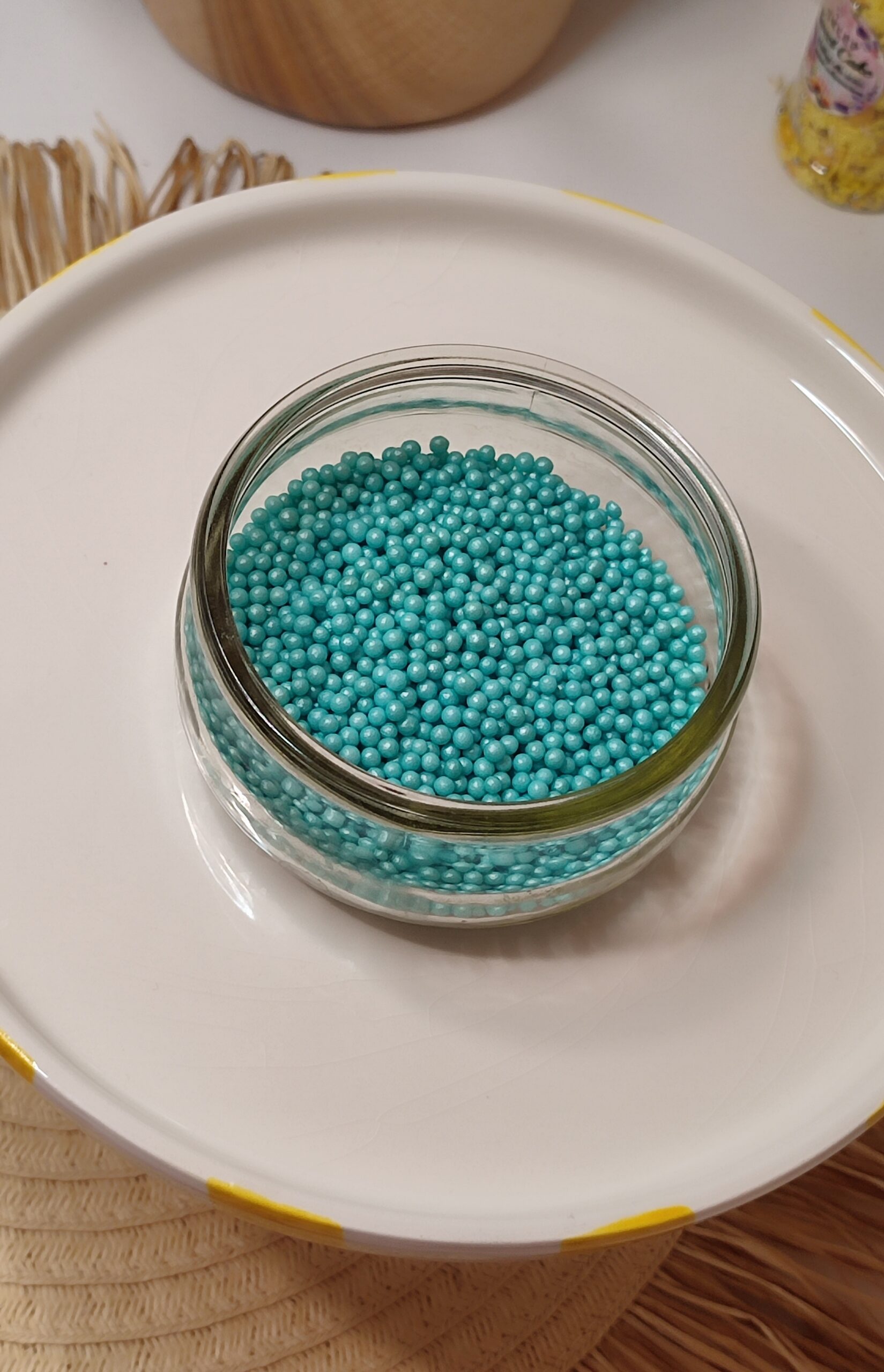 Posypka Perełki cukrowe 4mm Perłowo-Turkusowe 50g to efektowna dekoracja do wypieków i deserów. Perłowe, turkusowe perełki o średnicy 4 mm dodają słodkim przysmakom elegancji i kolorowego blasku. Idealne do ozdabiania tortów, ciastek, muffinek oraz innych słodkości, które chcesz wyróżnić wyjątkowym wyglądem. Produkt jest łatwy w użyciu i nadaje się na każdą okazję, od codziennych wypieków po specjalne uroczystości.