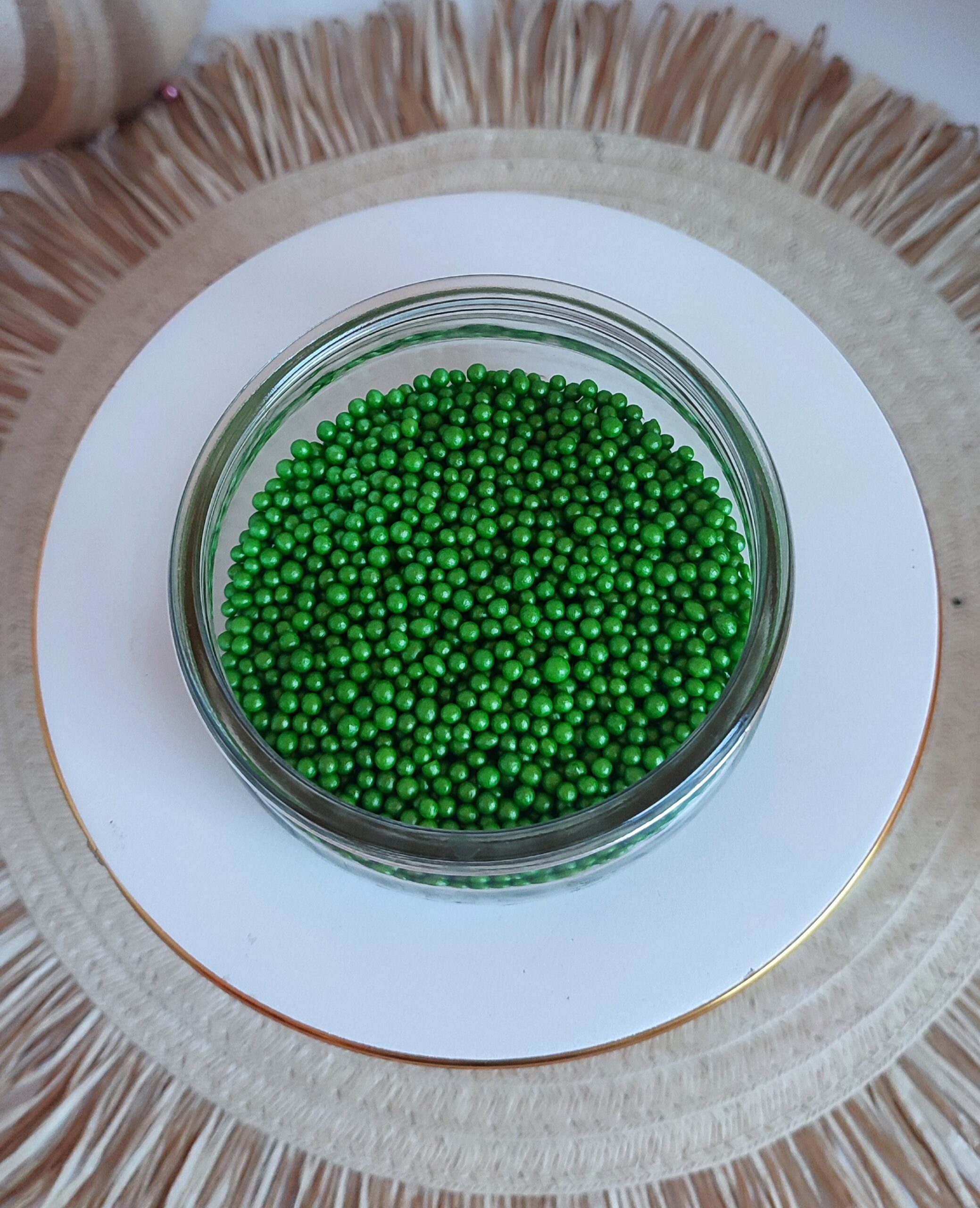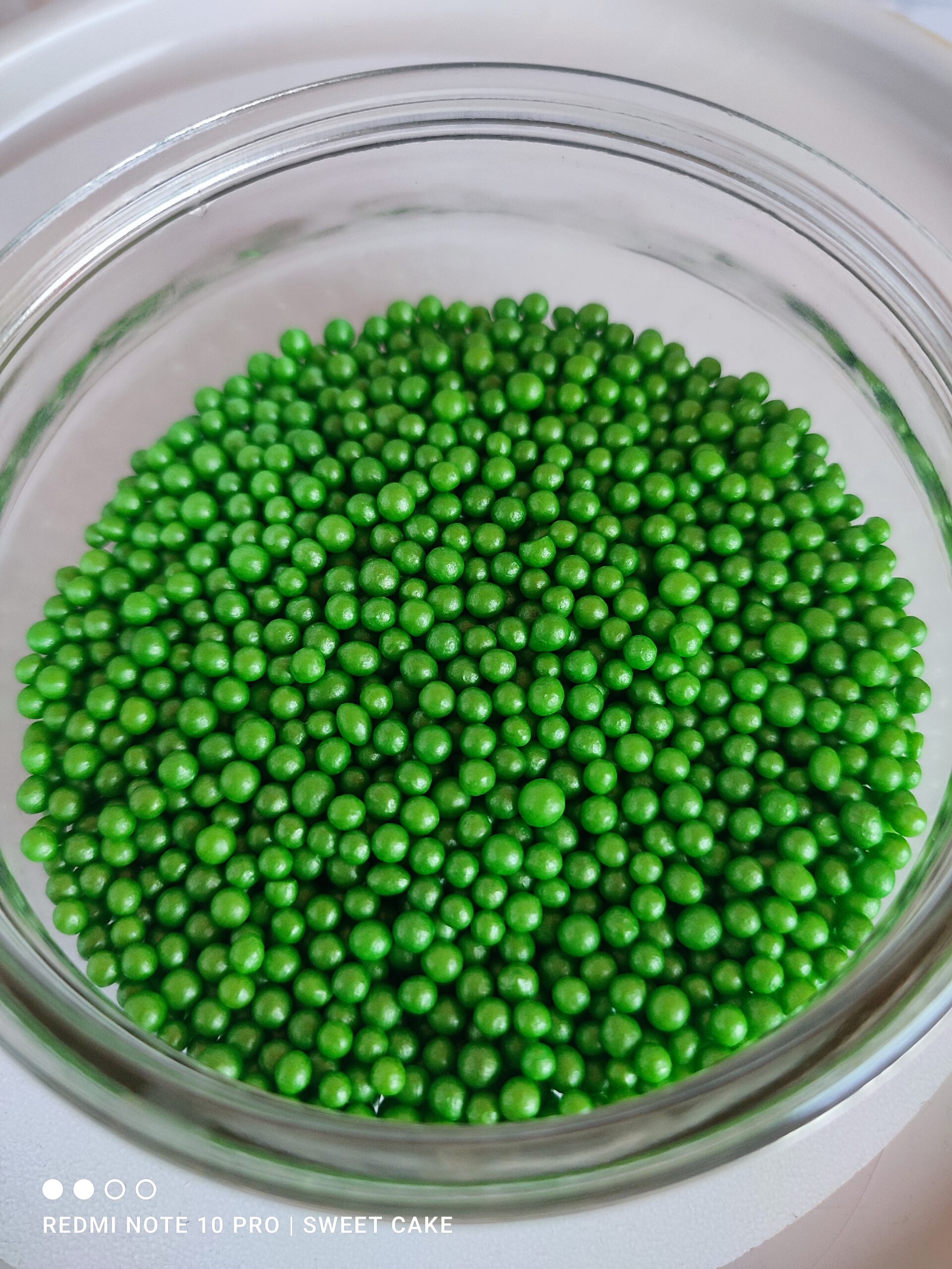 Delikatne perełki cukrowe o średnicy 4 mm w magicznym perłowo-zielonym odcieniu to idealny dekoracyjny akcent do Twoich wypieków. Ich subtelny połysk imitujący morską perłę dodaje elegancji tortom, babeczkom, deserom lodowym czy ciastkom. Opakowanie 50 g wystarcza na liczne dekoracje, a twarda, chrupiąca struktura zapewnia trwałość i smakową neutralność. Doskonałe do tortów weselnych, świątecznych przysmaków czy kreatywnych cukierniczych projektów. 100% cukrowe.