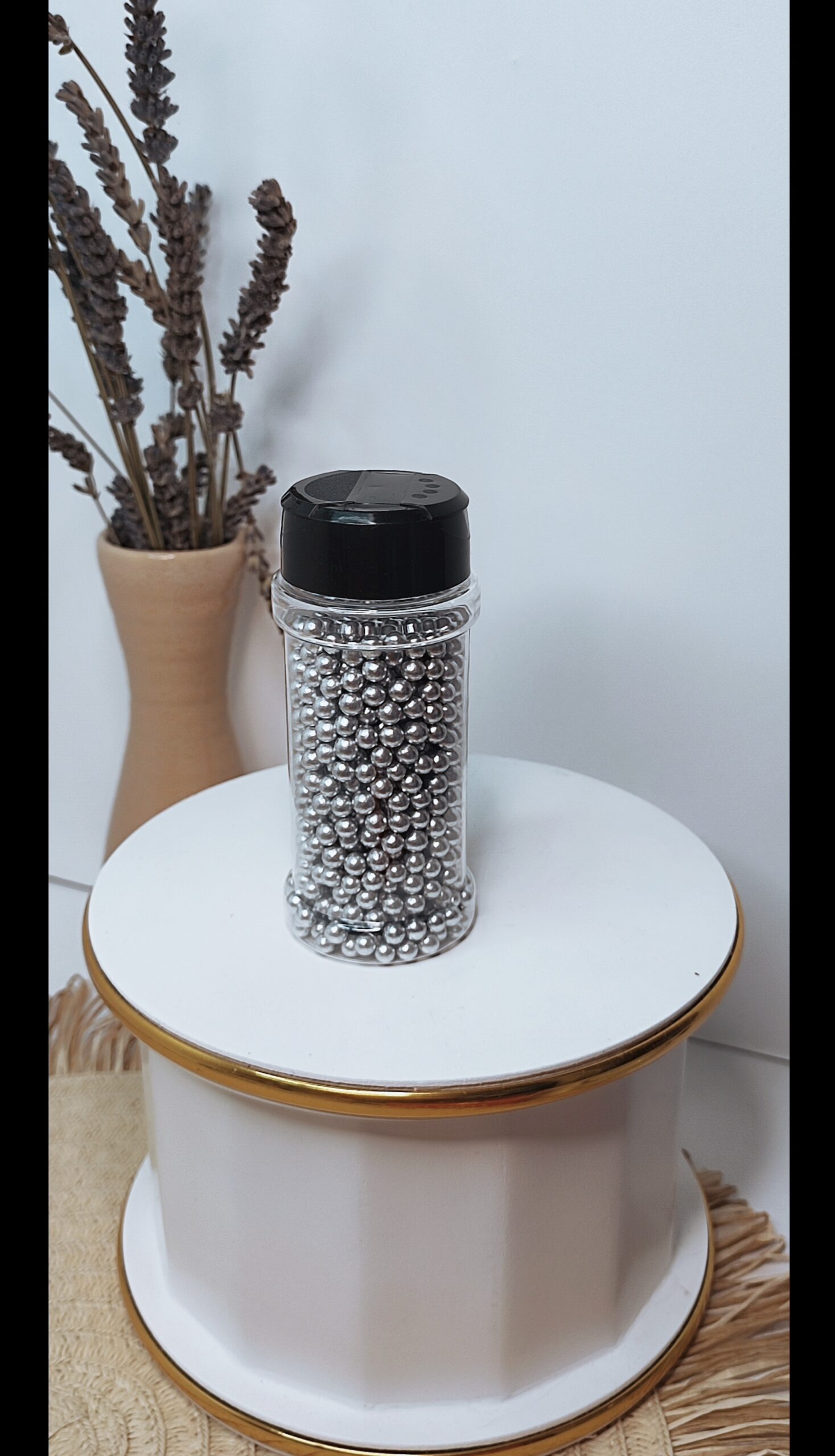 Perełki cukrowe 4mm Srebrne 60g to miękkie, błyszczące dekoracje cukrowe w srebrnym kolorze, idealne do ozdabiania tortów i deserów. Produkt o wadze 60 g zachwyca delikatną, miękką konsystencją, która nie kruszy się podczas aplikacji.
