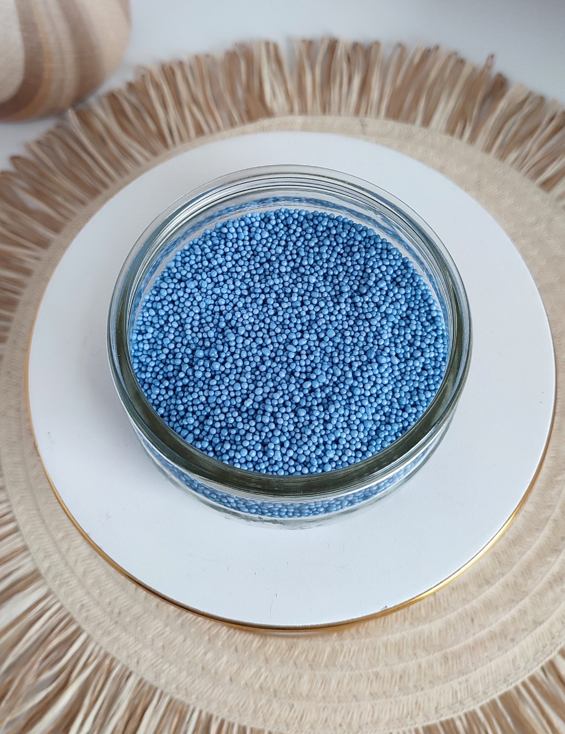 Odkryj magię niebieskich mączek perłowych – delikatną posypkę cukrową o perłowym połysku, która nada Twoim wypiekom i deserom bajkowy blask! Te drobne, mieniące się granulki w intensywnym odcieniu błękitu idealnie sprawdzą się jako dekoracja tortów, babeczek, ciast czy lodów.