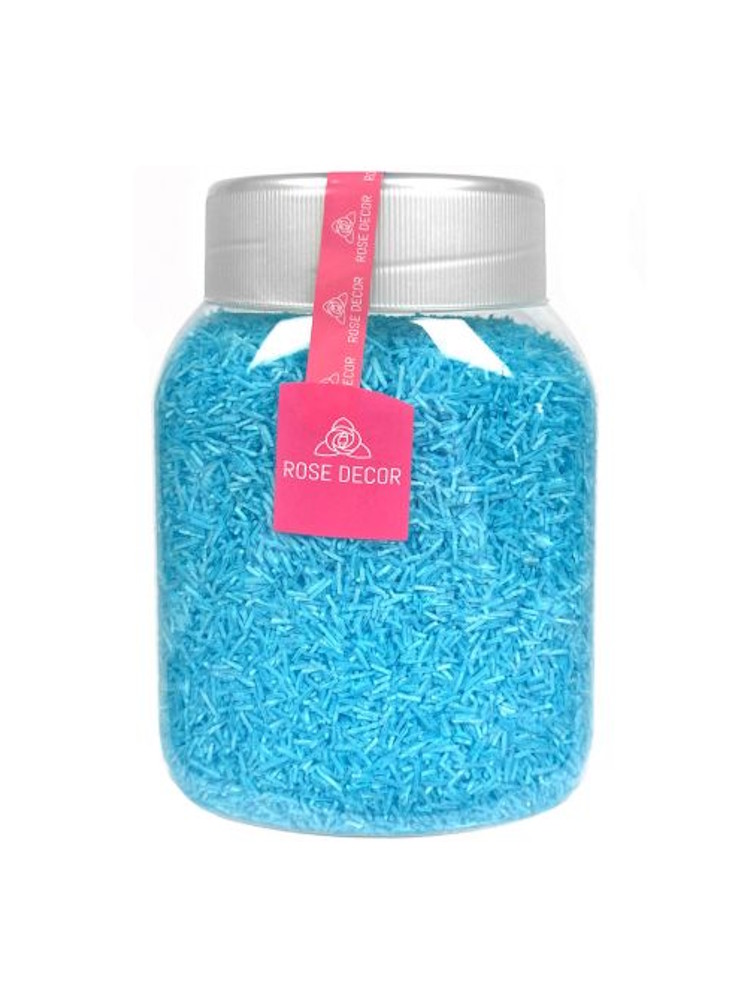 Posypka waflowa 100g NIEBIESKA Rose Decor to drobna, waflowa dekoracja o intensywnym niebieskim kolorze, idealna do ozdabiania tortów, ciasteczek, muffinek, deserów w pucharkach, a nawet lodów. Jest bezsmakowa i pozbawiona aromatu, dzięki czemu nie wpływa na smak wypieków, a jednocześnie nadaje im efektowny i estetyczny wygląd. Posypka składa się z bardzo drobnych, chrupiących kawałków wafli w postaci cienkich nitek, które pozwalają na tworzenie różnorodnych wzorów. Produkt jest lekki, delikatny w dotyku, łatwy w aplikacji dzięki praktycznemu opakowaniu. Niebieski kolor posypki doskonale sprawdzi się w tematyce urodzinowej, zimowej czy bajkowej.