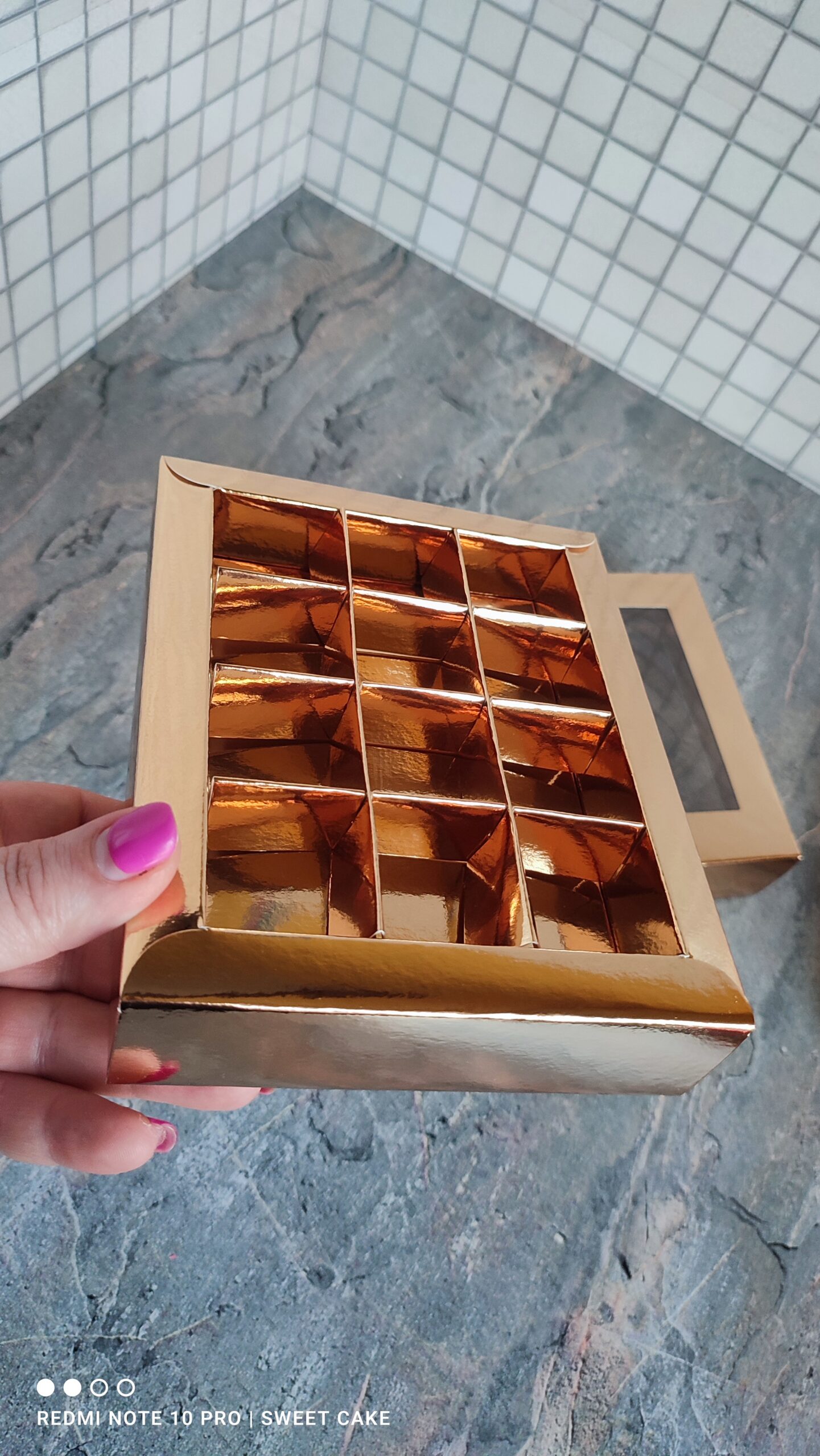 Pudełko na 12 pralin ZŁOTE 17,5×14 H4