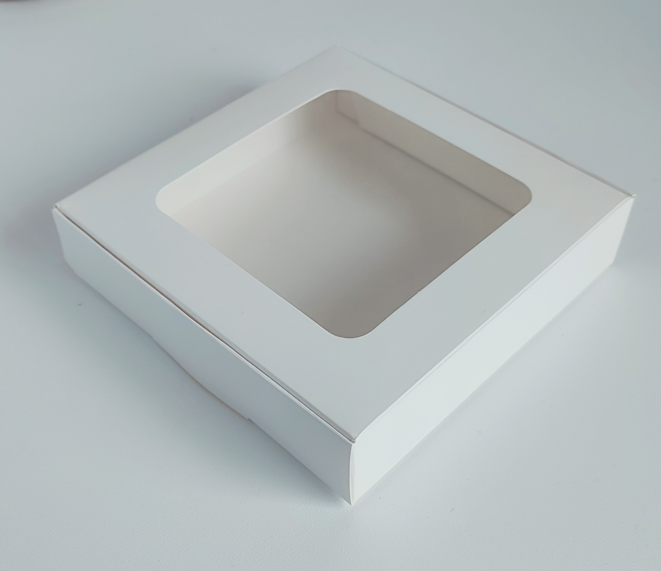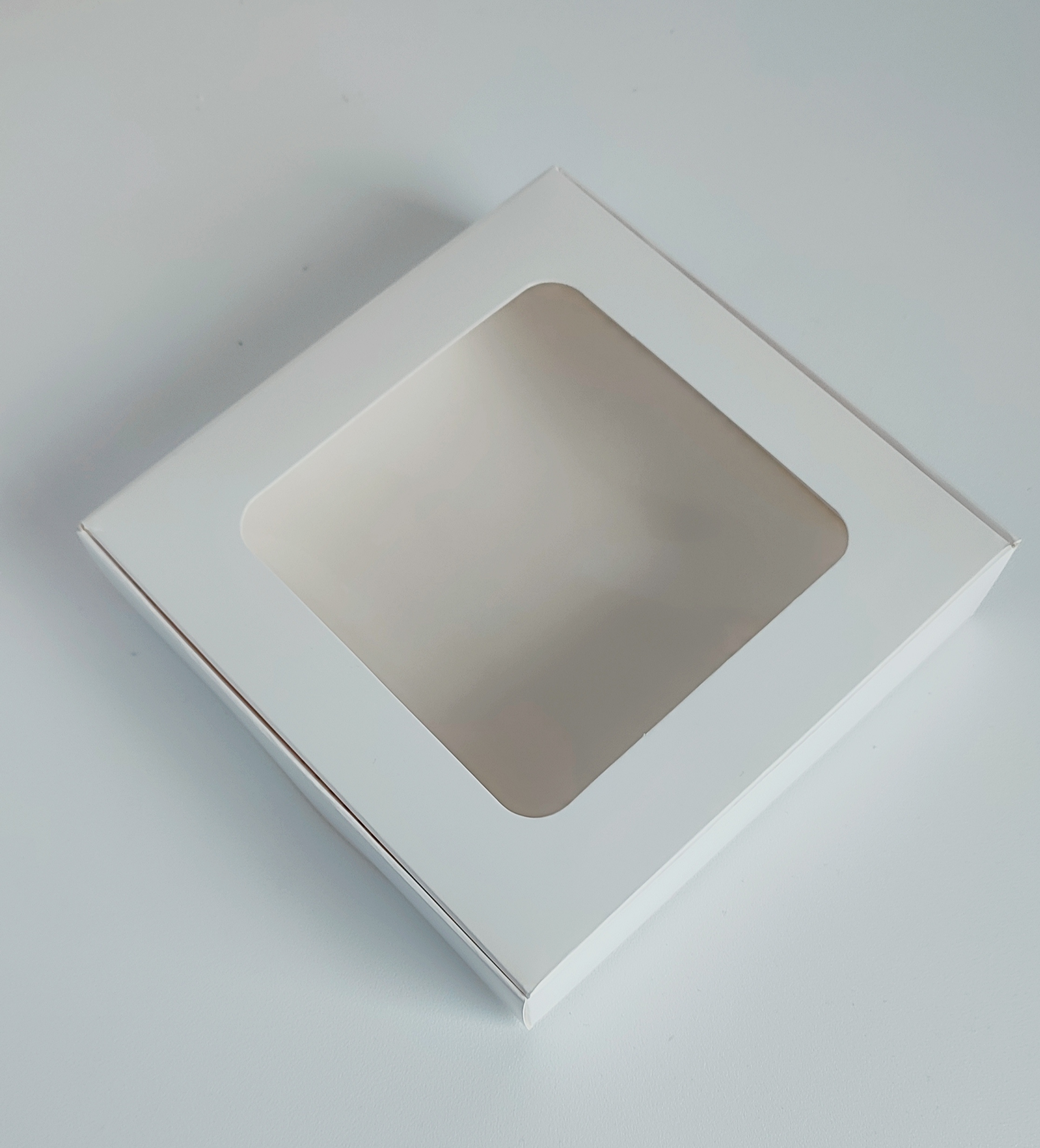 Pudełko prezentowe jednolite małe białe Z OKNEM 15X15X3 cm