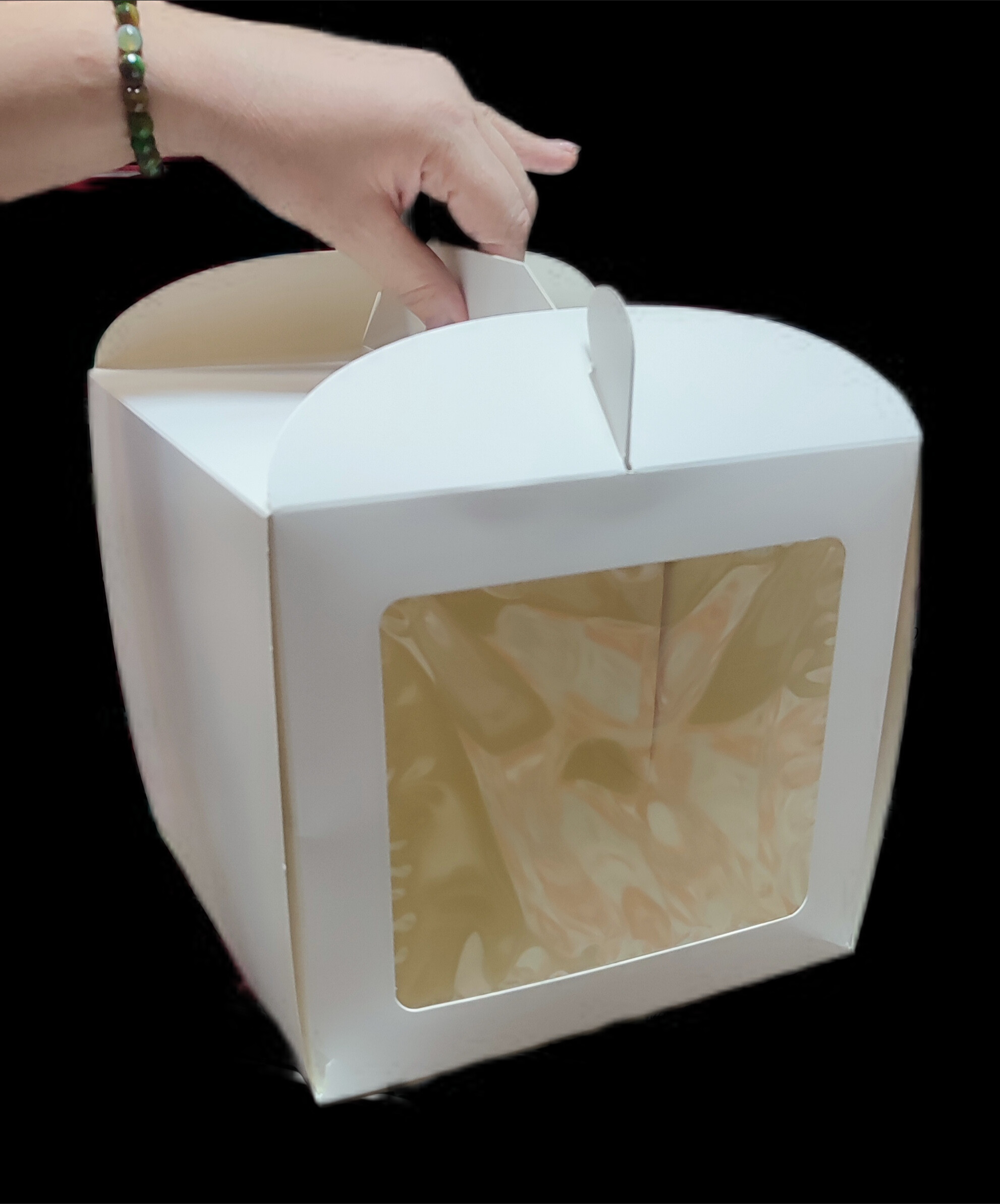 Pudełko prezentowe z rączką Białe 23x23x21 cm koszyczek z oknem dla transportowania tortu